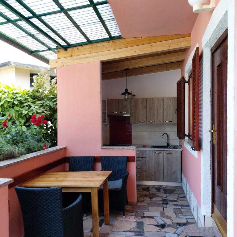 Domaćini su ljubazni i izlaze u susret za svaku vašu želju. Plaža je stvarno na 10 metara. Smještaj je ugodan a klima nije potrebna jer je u apartmanu prijatna temperatura. Drugi put smo bili i doći ćemo sigurno opet. Za svaku pohvalu. Imali smo i besplatan parking.
