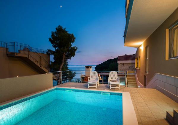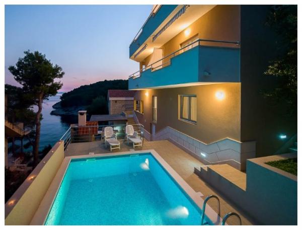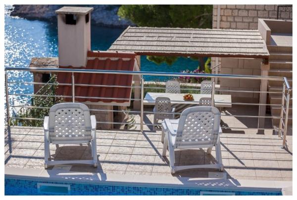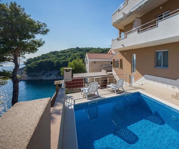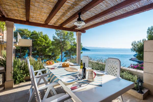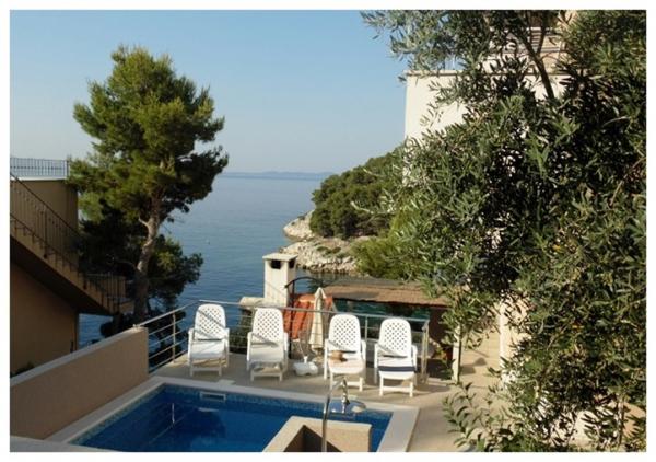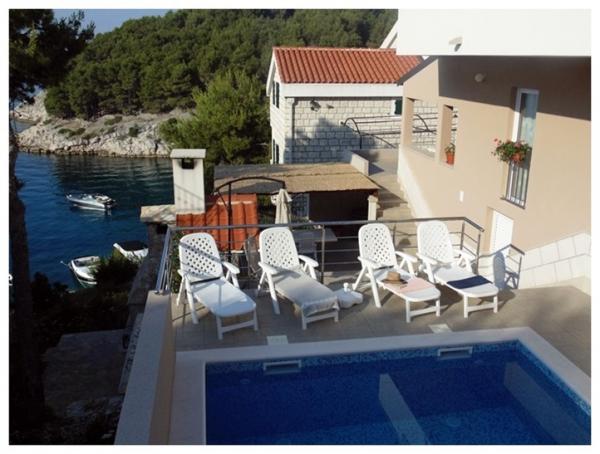 Turistička pristojba je uključena u cijenu.Udaljenost od mora otprilike 25 m, a od gradića Milne 2 km. Apartmani s pogledom na more. Privatna plaža i privatni parking. Velika terasa s roštiljem. Bazen s vanjskim tušem.