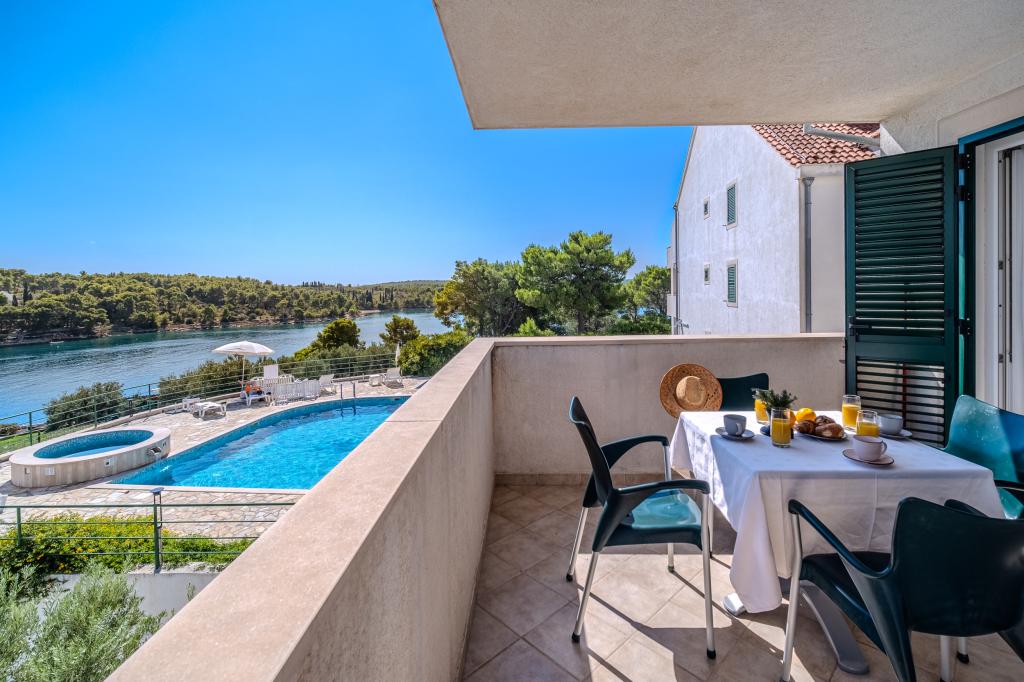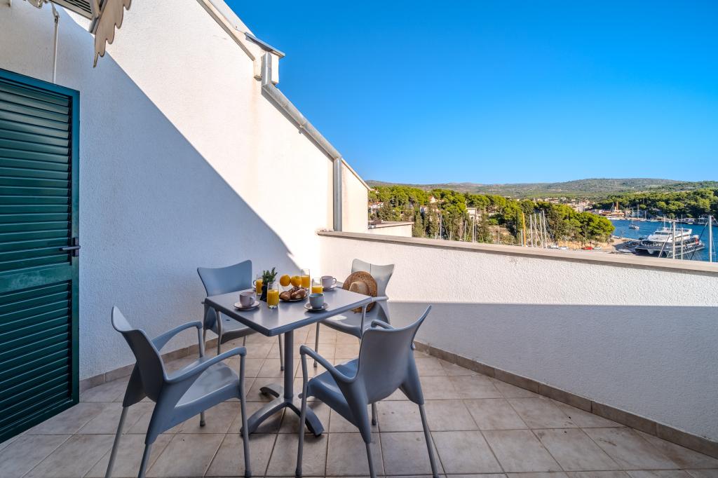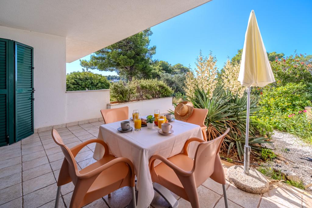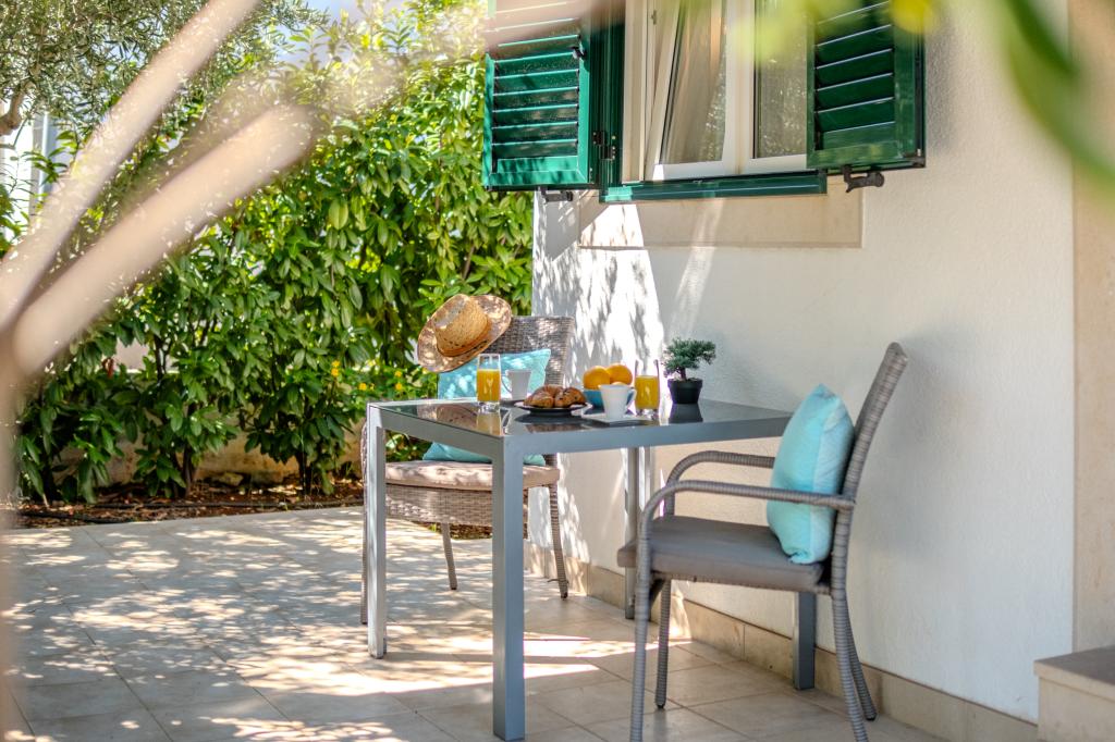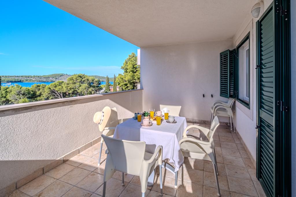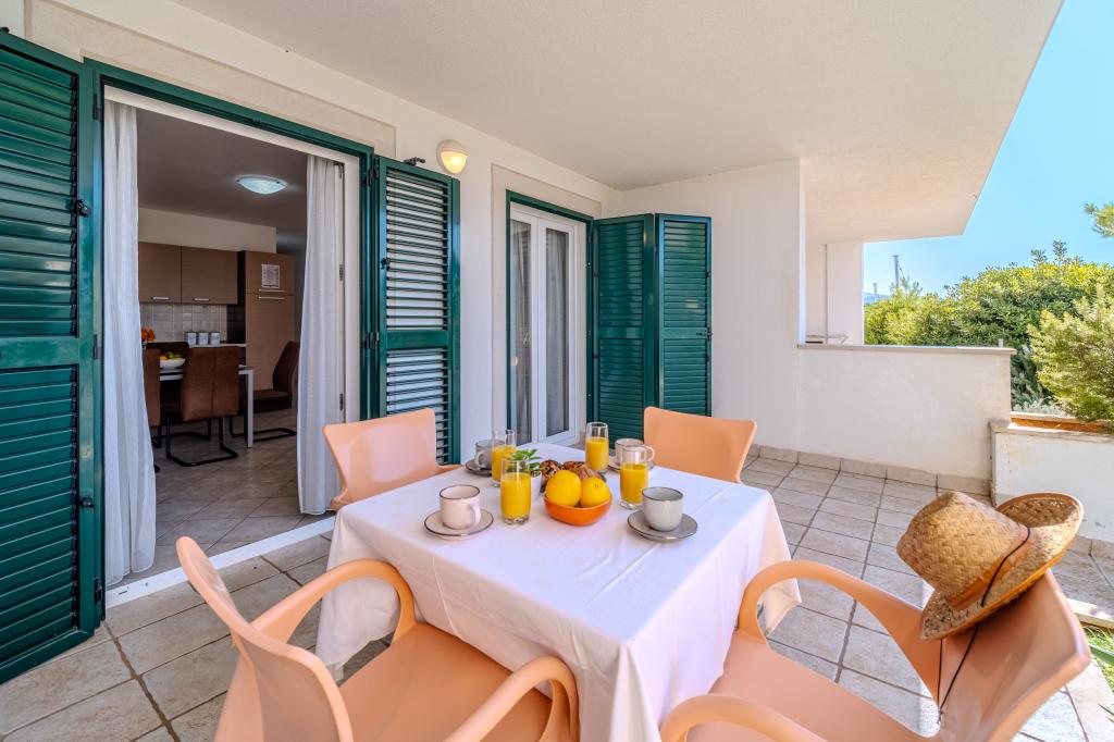 Svi apartmani su okrenuti prema moru, te imaju prostranu terasu/balkon i pogled na more.