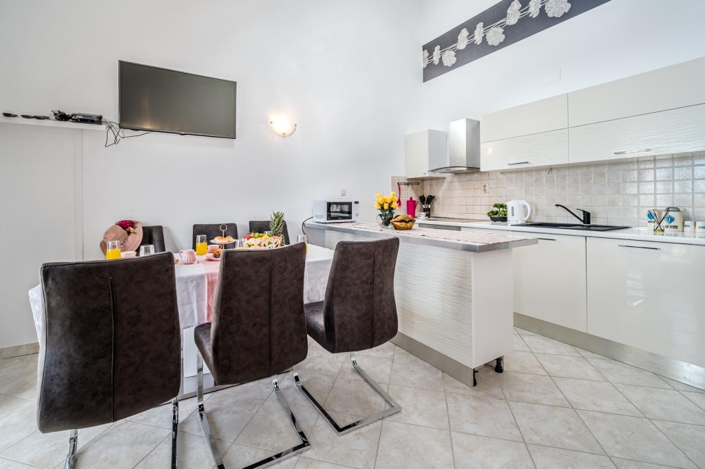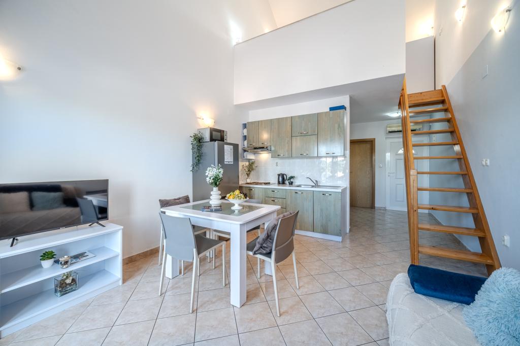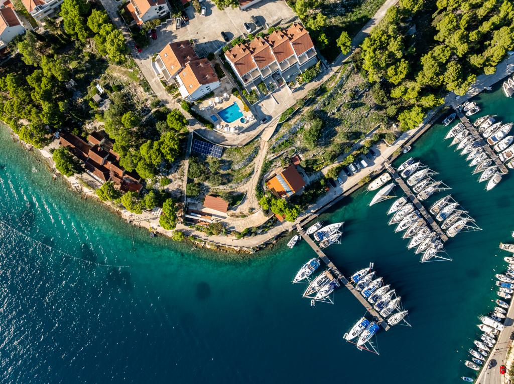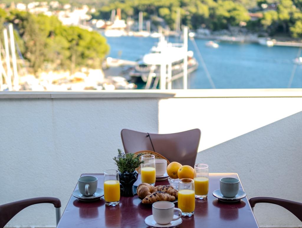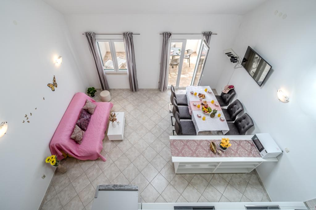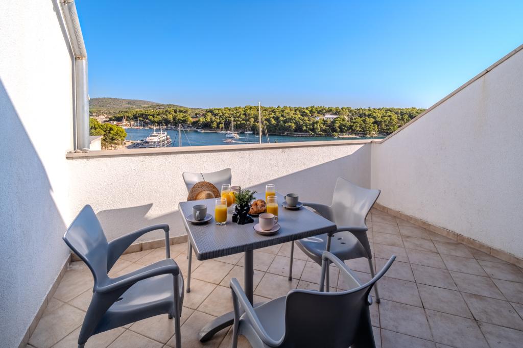 Svi apartmani su okrenuti prema moru, te imaju prostranu terasu/balkon i pogled na more.
