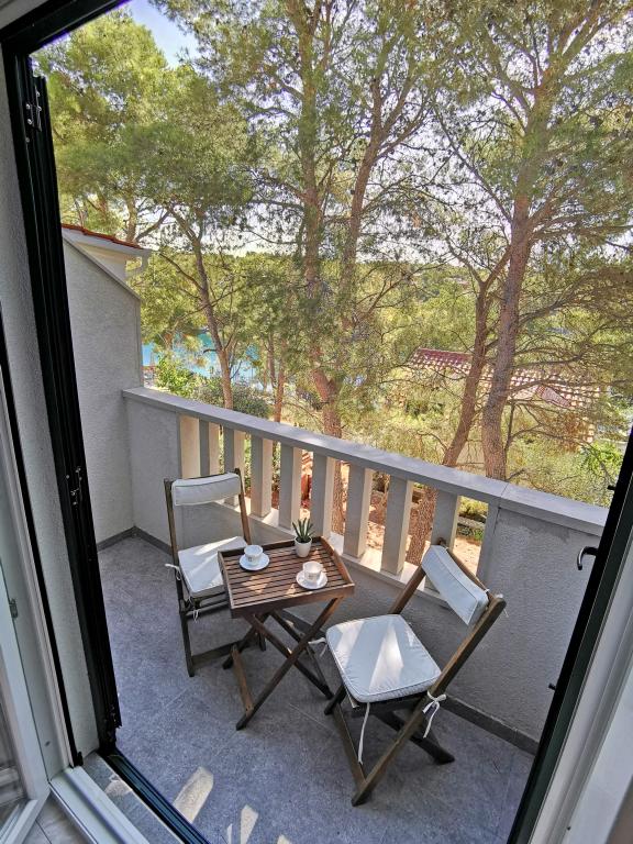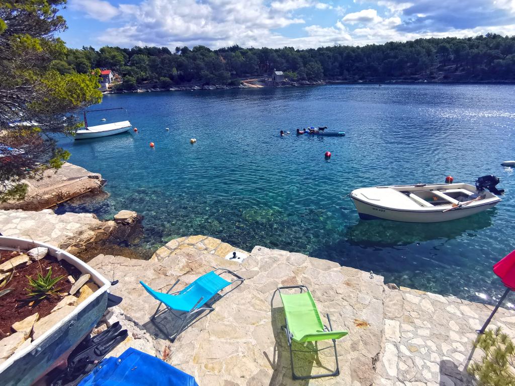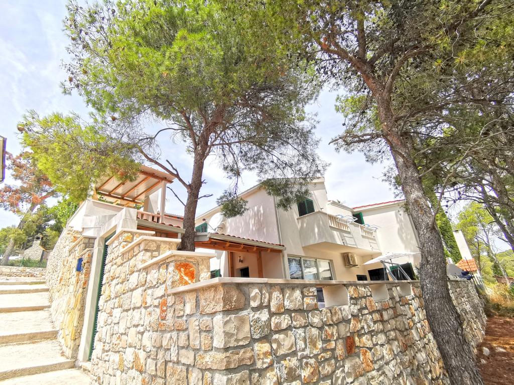 Dva suvremeno opremljena apartmana, s TV-om, Wi-Fi-jem, perilicom posuđa i klima uređajima. Kuhinje su potpuno opremljene svim potrebnim posuđem i priborom za kuhanje i jelo. Prozori su zaštićeni mrežama protiv komaraca. Apartmani su smješteni u prekrasnoj borovoj šumi, u uvali na jugozapadnoj strani otoka Brača, samo 50 metara od mora i plaže. Manji apartman sastoji se od kuhinje s dnevnim boravkom, spavaće sobe, kupaonice s tušem te balkona i natkrivene terase s pogledom na more. Veći apartman ima dvije spavaće sobe, dnevni boravak, kupaonicu s tušem, perilicu rublja, balkon s pogledom na more i prostranu natkrivenu terasu. U prizemlju je zajednički roštilj na raspolaganju (korištenje vlastitog ugljena). Oba apartmana imaju osigurano parkirno mjesto. Najbliže mjesto, Milna, udaljeno je 1,5 km, odnosno oko 15 minuta lagane šetnje. Ljubitelji prirode mogu uživati u dugim šetnjama kroz borovu šumu, dok zaljubljenici u more mogu istraživati bogatstvo morske flore.