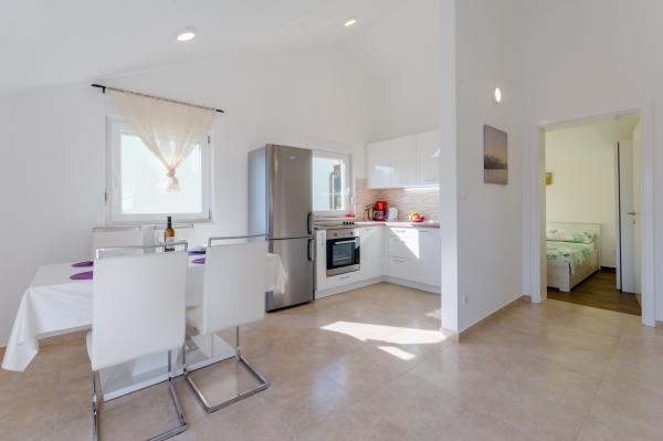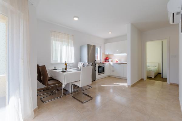 Uredni i odlično opremljeni apartman s prekrasnim pogledom u kojem su nas dočekali ljubazni i dragi domaćini. Lokacija je predivna- blizina mora, obilje mira i mirisa Mediterana. Jedva čekamo vratiti se ponovo.