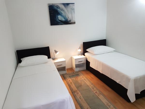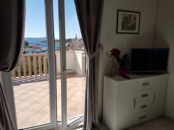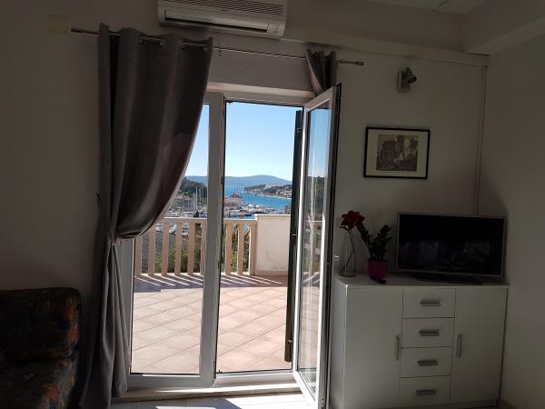 Odlična lokacija, blizu centra ali u mirnom okruzenju. Prekrasan pogled sa terase na zaljev i marinu Milna. Puza vam se nezaboravan pogled na zalazak sunca. Sam apartmanu je velik i čist. Ima dovoljno prostora za kuhanje, jer ponekad znaju neki apartmani imati bas malo pulta u kuhinji ali tu je svega dovoljno. Velik hladnjak, cak stednjak sa ror pecnicom. Ima dovoljno posude. Kupatilo je veliko, isto tako i sama terasa. Ugostitelji su veoma ljubezni i susretljivi ako imate bilo kakvo pitanje ili problem. U bližini je gradska plaža, ali vam preporucam da se kupate u prekrasnom zaljevu Osibova, to vam je samo dobrih 5 min. avtom, mozete i biciklom. Oni koji vole biciklirati imaju dosta makedamskih puteva za aktivan odmor. Na večer mozete izaci u je dan od barova gdje skoro vsako vece igra live muzika. OCJENA ODLIČNO