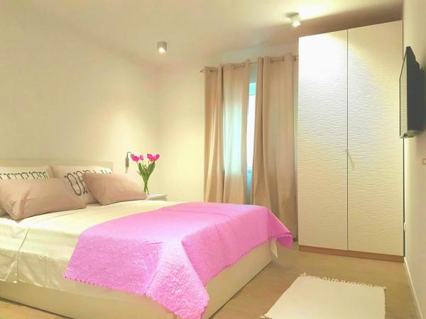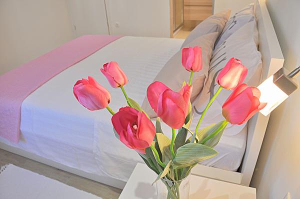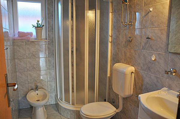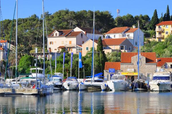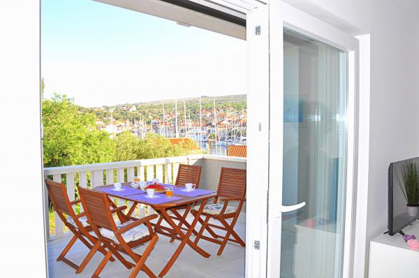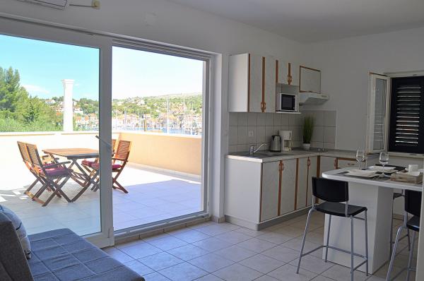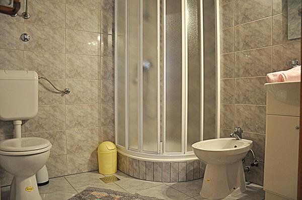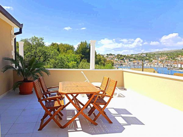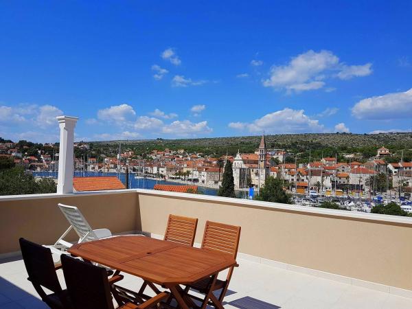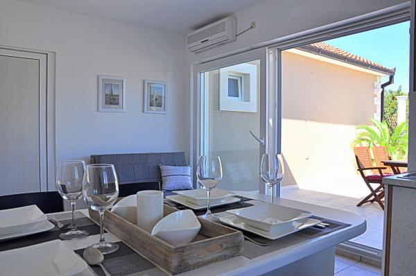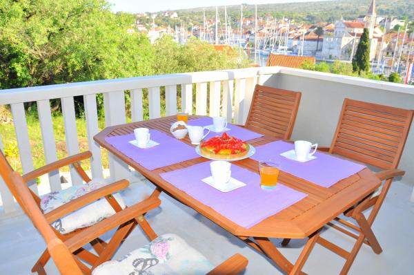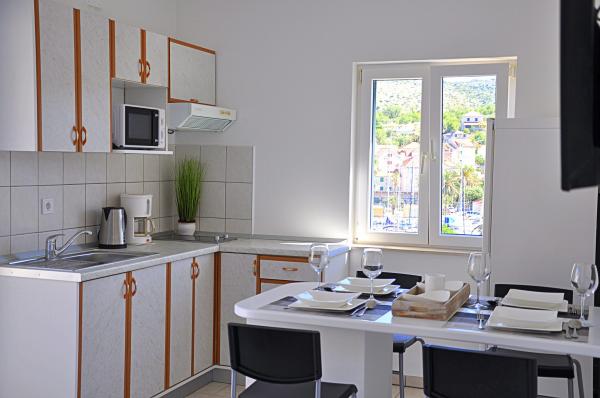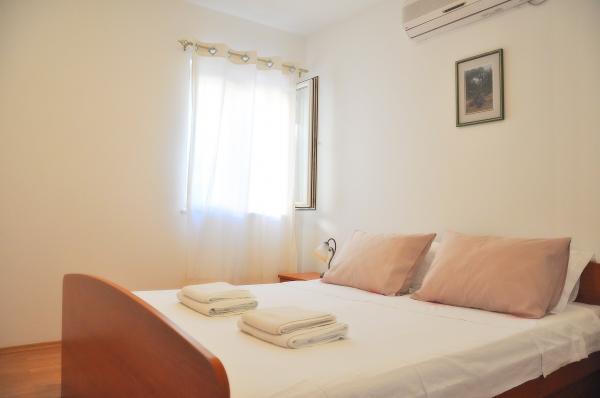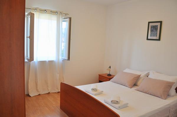 Apartmani se nalaze u obiteljskoj kući koja je smještena na mirnoj lokaciji, a samo 10 minuta hoda do centra i 15 do najbliže plaže. U ponudi imamo dva apartmana. A2 (4 1) 60m2 s tri zvjezdice sadrži kompletno opremljenu kuhinju iz koje se izlazi na veliku terasu sa prekrasnim pogledom na uvalu. Apartman ima dvije dvokrevetne sobe, dva kupatila koji uključuju sušilo za kosu i besplatni kozmetički pribor. Perilicu rublja, tv, sat, internet i grill. Dozvoljavamo kučne ljubimce. A1- novo opremljeni apartman s 4 zvjezdice, površine 80m2, dvije dvokrevetne spavaće sobe sa LCD TV, dva kupatila sa tuš kabinama ( sušilo za kosu i osobni kozmetički pribor ) prostranim dnevnim boravkom sa LCD TV i modernom sofom za razvlačenje, kompletno opremljenom kuhinjom sa perilicom posuđa te blagovaonom. Cijeli apartman je klimatiziran, a ima i podno grijanje, Tv sa satelitski program i Wi-Fi internet. Također ima prostranu terasu sa panoramskim pogledom na uvalu te besplatni parking i gril