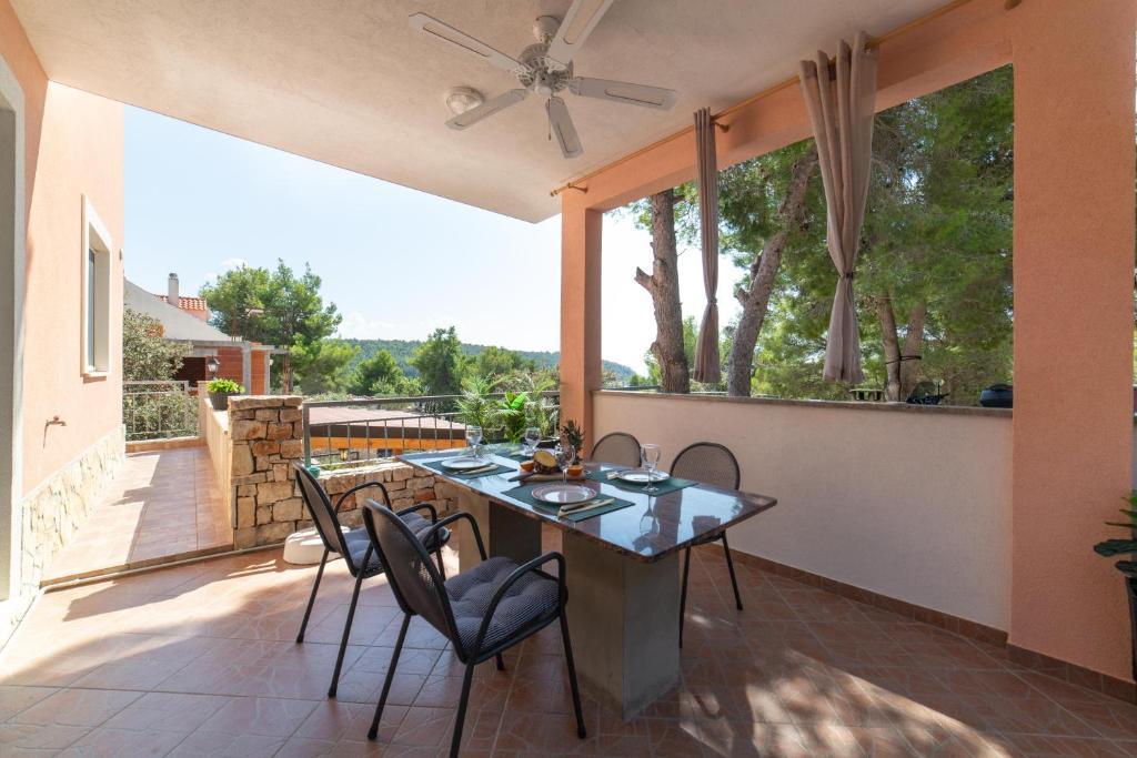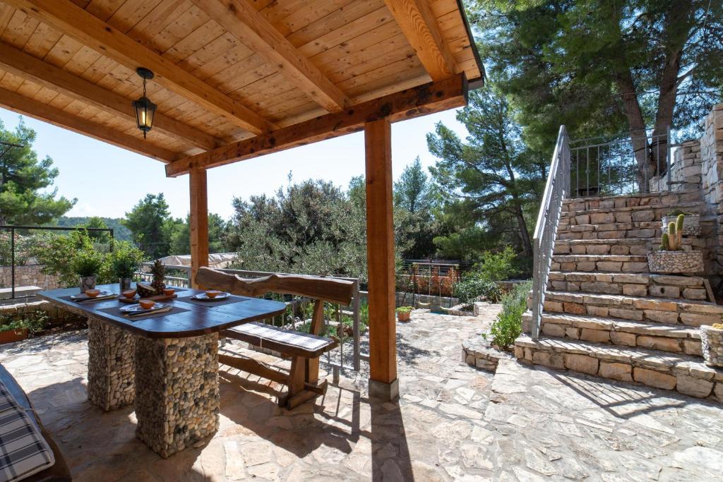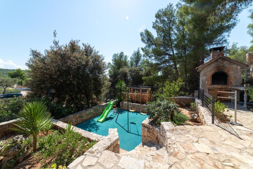 House Anka is ideal house for family's with chalder and/or group of friends. House Anka is located 40 m from the sea and only 2 km from the center of Milna on the island of Brač. House Anka has 4 bedrooms, 4 bathrooms, and is ideal for comfortable accommodation for up to 8+2 people. There is also playground located in the garden and 3 terraces with dining and/or sitting area and barbecue. House has private parking for 2 cars. House has sweeping sea views across both Duboka and Lučice Bays, amongst the most stunning bays in the Adriatic. Surrounded by a beautiful natural landscape and crystal-clear waters nestled among the pine trees, this is a perfect place to relax and connect again with nature, friends, and family.