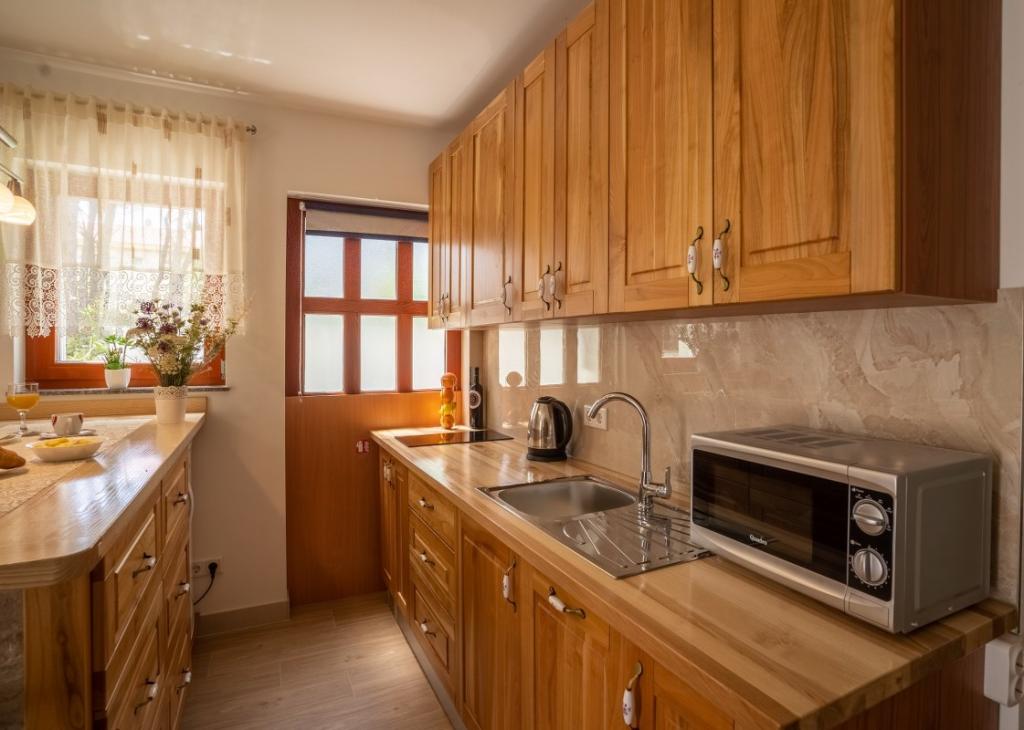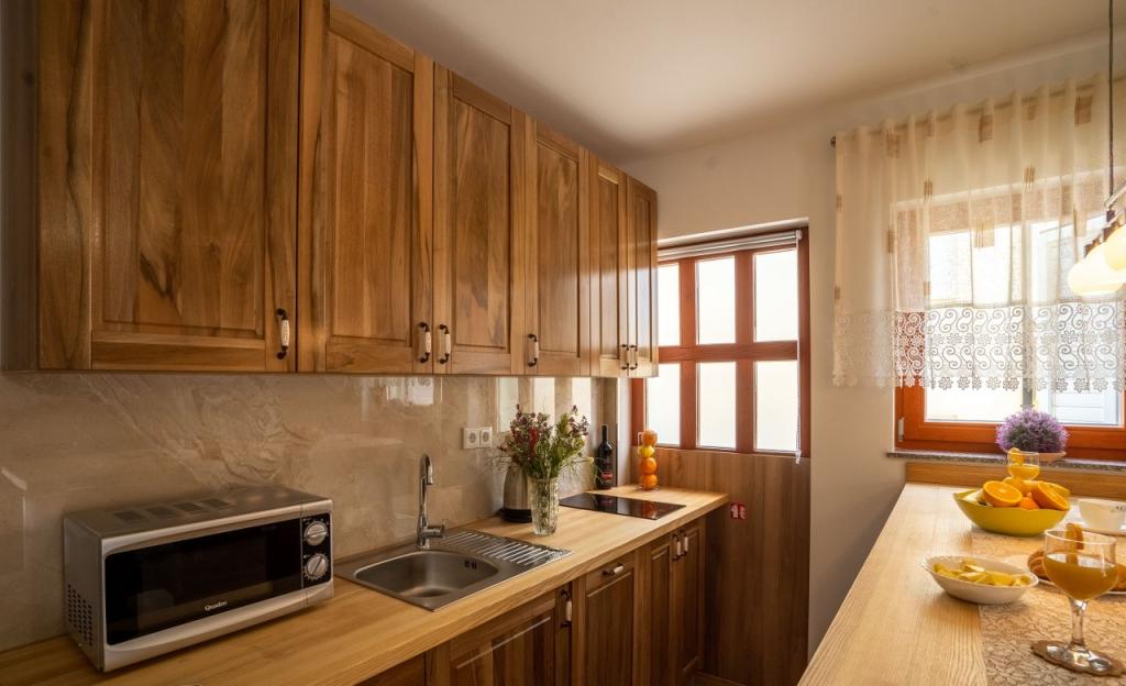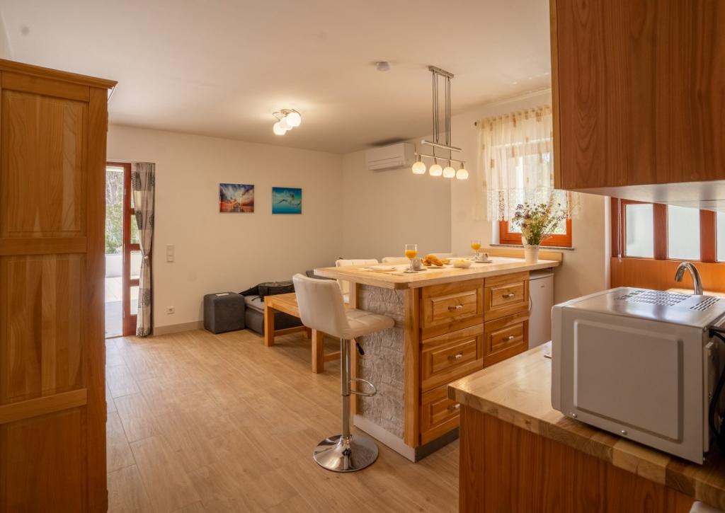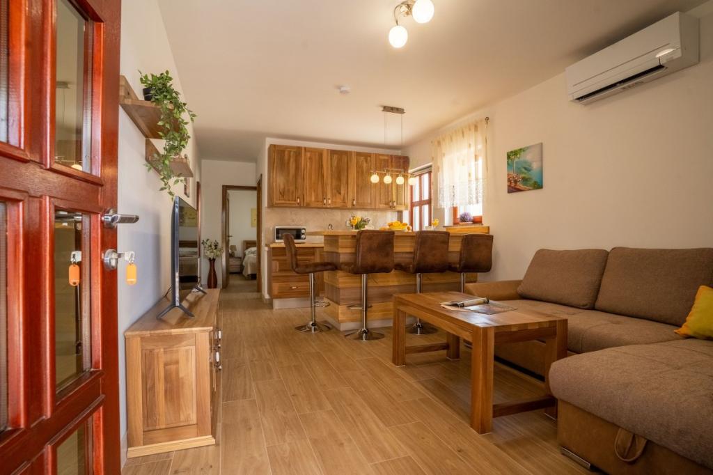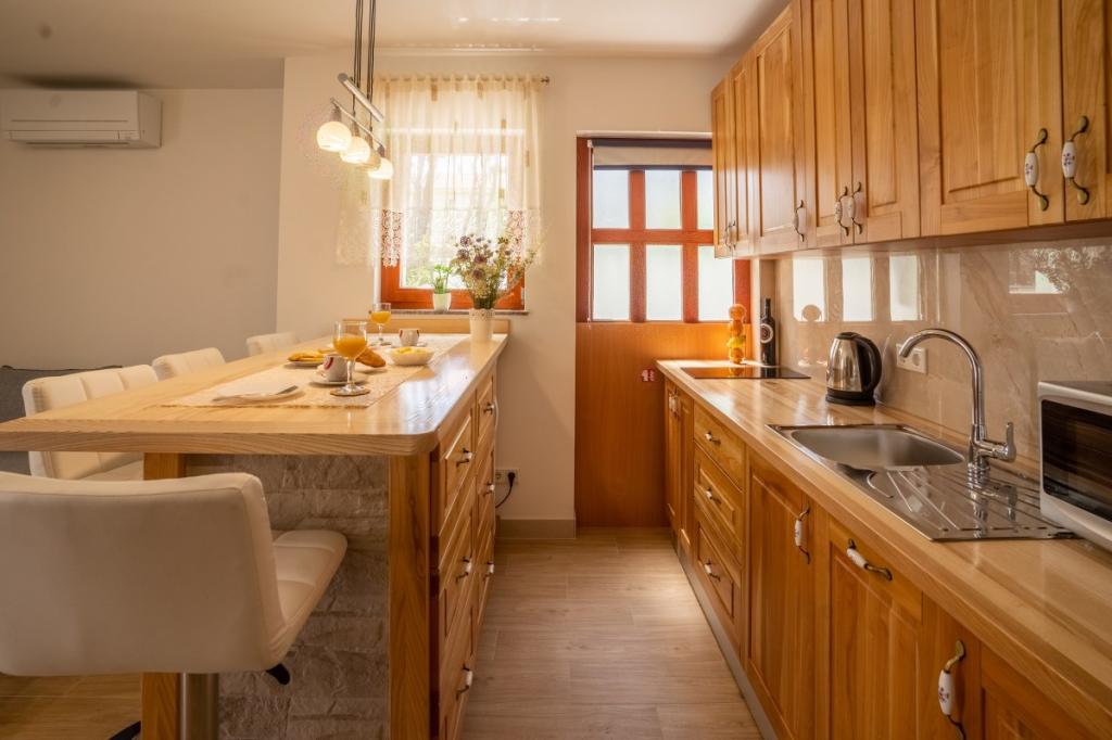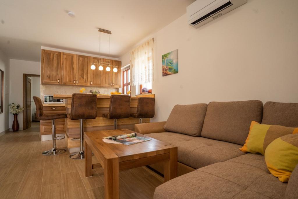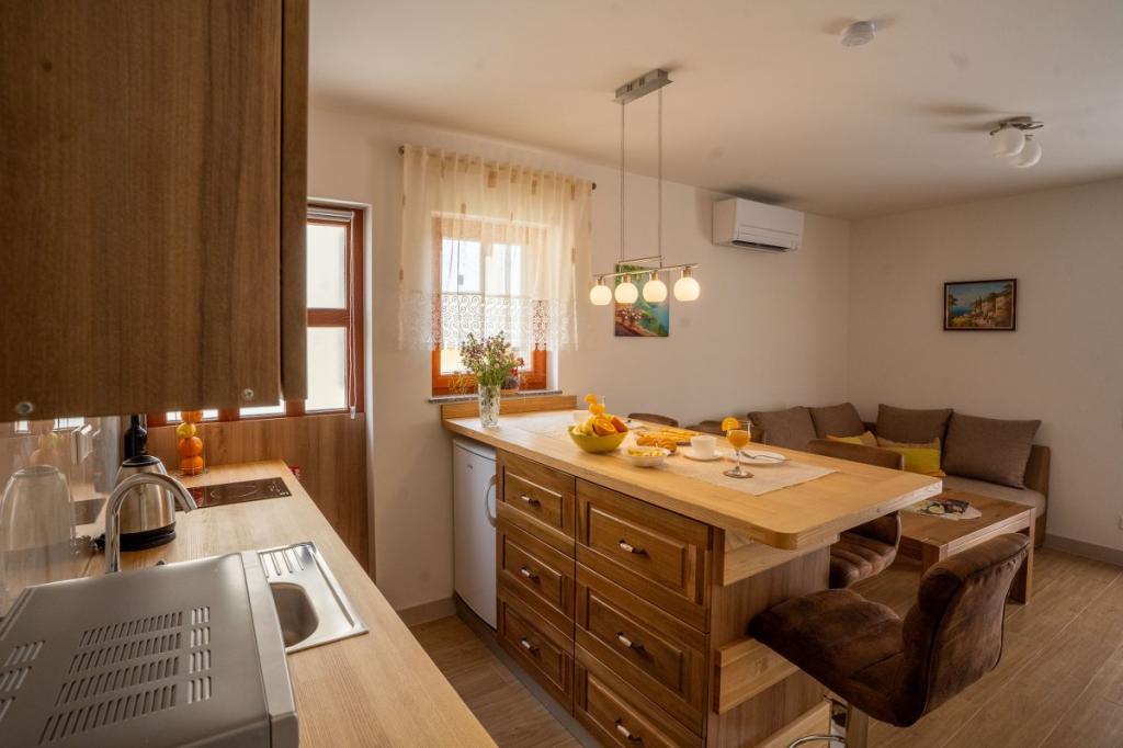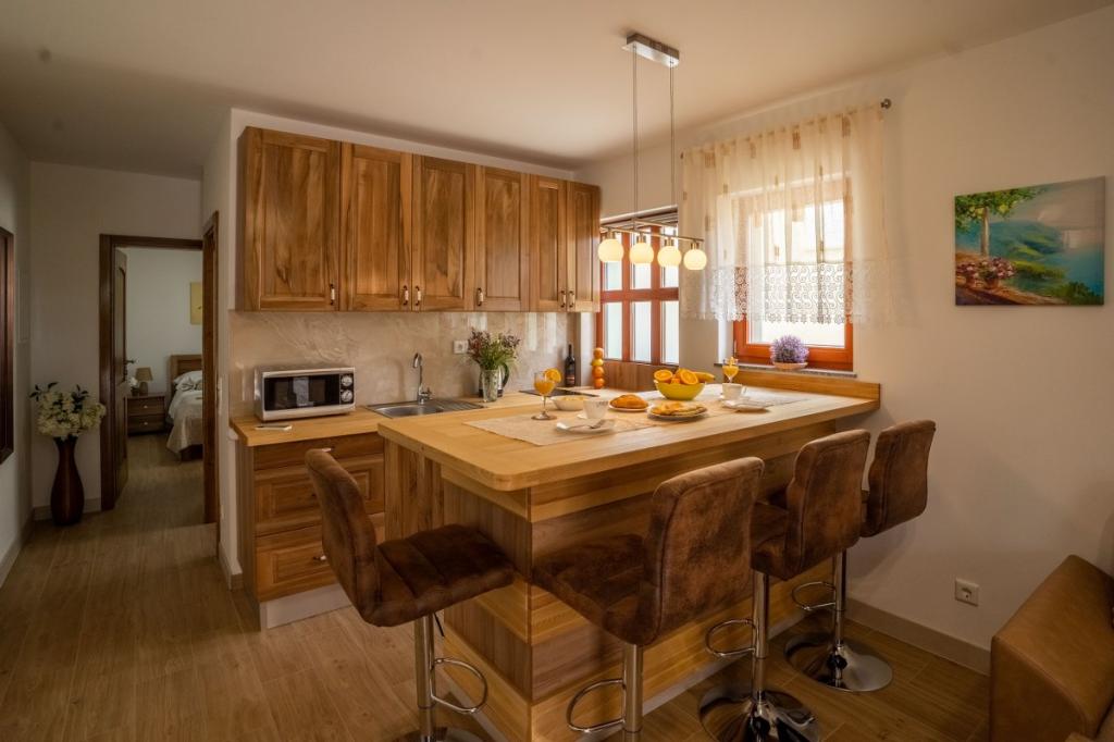 Villa Kalinić se sastoji od dva apartmana. Jedan se naziva Trešnja jer je 80% namještaja napravljeno od drveta Trešnje, a drugi se naziva apartman Orah, jer je napravljeno od drveta Oraha.Svaki komad namještaja je autentičan i ručno je napravljen od domaćina koji je jako dobar i iskusan stolar.Oba apartmana imaju jednu spavaću sobu sa King veličinom kreveta i veliki ormar u koji će stati sva vaša garderoba.Također ima kupaonicu koja ima veliku tuš kabinu i mašinu za pranje robe.Oba apartmana imaju poprilično veliku kuhinju koja ima svu potrebnu opremu za kuhanje koja je nova.Dnevni boravak se sastoji od udobnog kauča za gledanje TV-a, a koji ujedno ima ulogu pomoćnog ležaja.Izvan apartmana je jako prostrano za jelo ili za uživanje u piću na drvenim ležaljkama.
