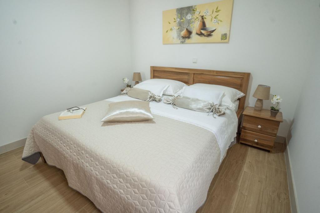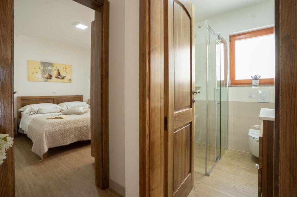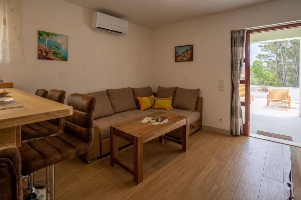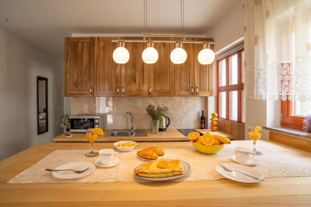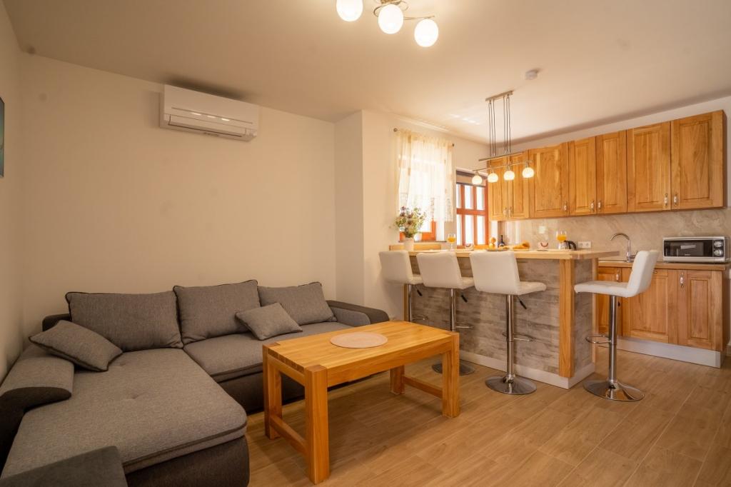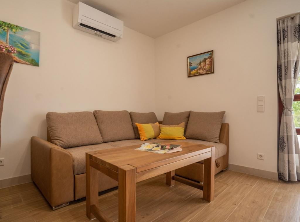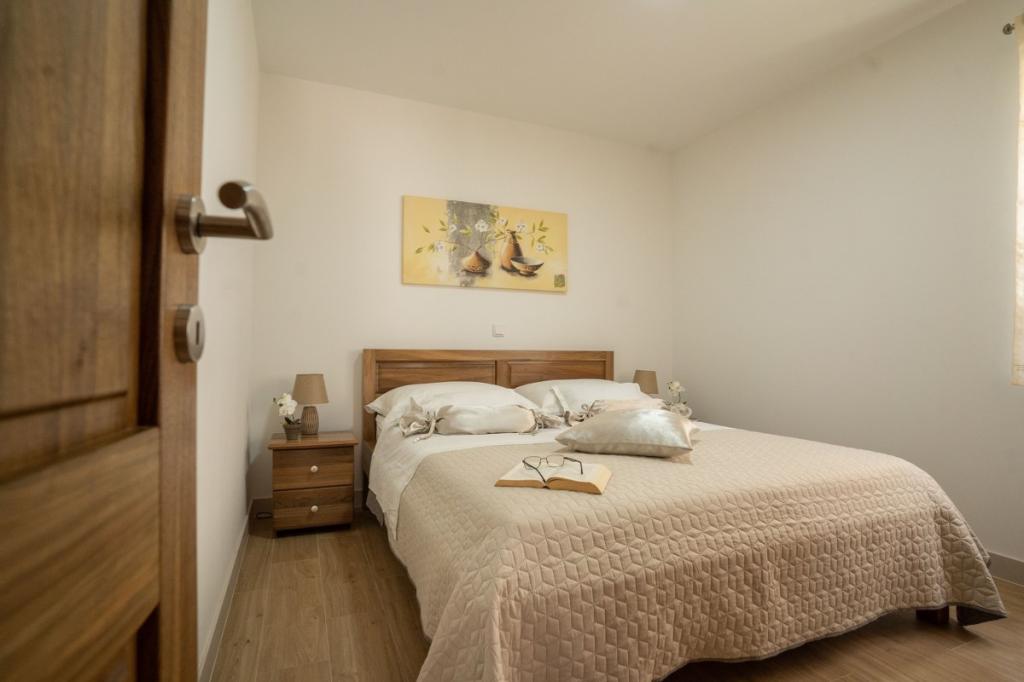 Villa Kalinić se sastoji od dva apartmana. Jedan se naziva Trešnja jer je 80% namještaja napravljeno od drveta Trešnje, a drugi se naziva apartman Orah, jer je napravljeno od drveta Oraha.Svaki komad namještaja je autentičan i ručno je napravljen od domaćina koji je jako dobar i iskusan stolar.Oba apartmana imaju jednu spavaću sobu sa King veličinom kreveta i veliki ormar u koji će stati sva vaša garderoba.Također ima kupaonicu koja ima veliku tuš kabinu i mašinu za pranje robe.Oba apartmana imaju poprilično veliku kuhinju koja ima svu potrebnu opremu za kuhanje koja je nova.Dnevni boravak se sastoji od udobnog kauča za gledanje TV-a, a koji ujedno ima ulogu pomoćnog ležaja.Izvan apartmana je jako prostrano za jelo ili za uživanje u piću na drvenim ležaljkama.