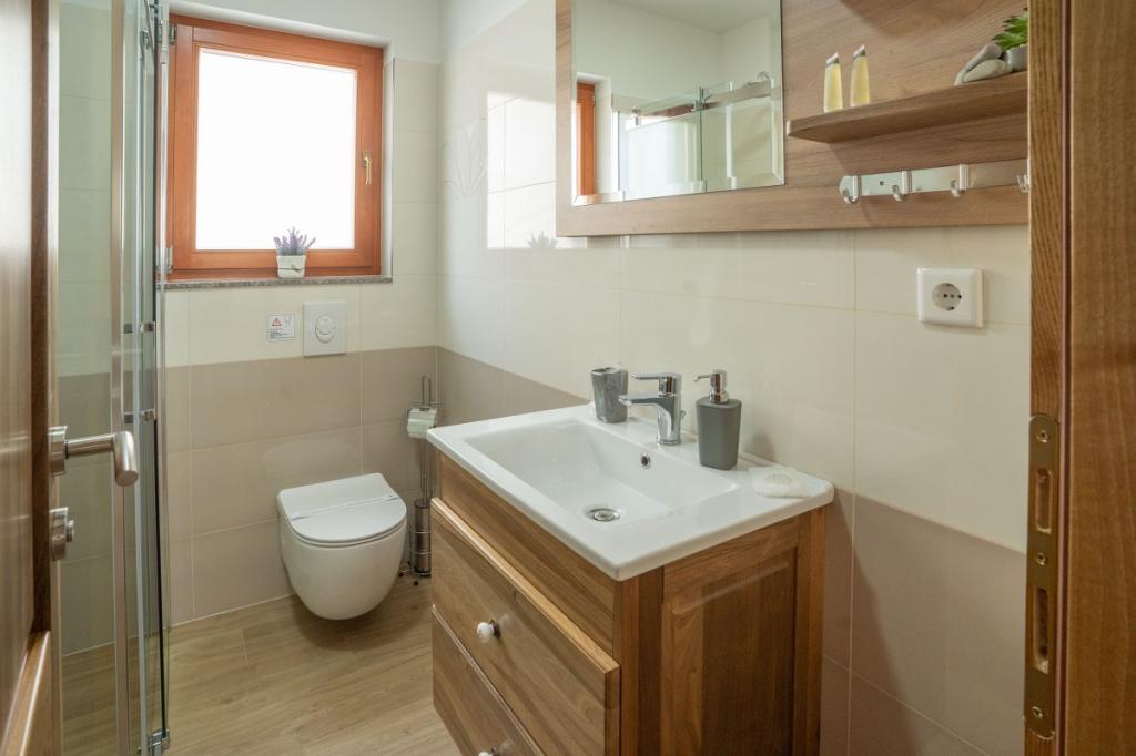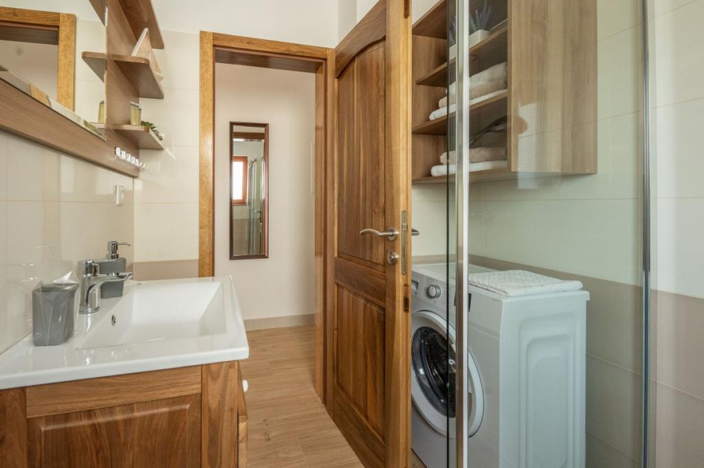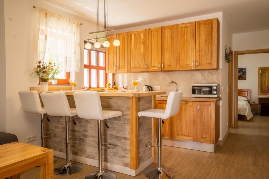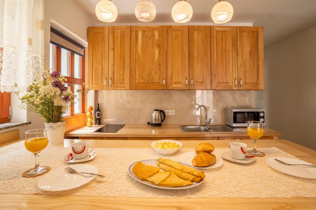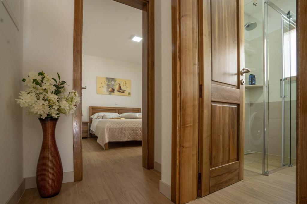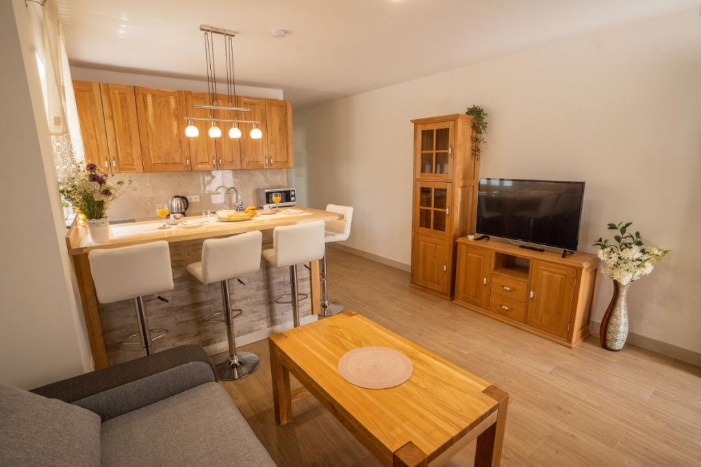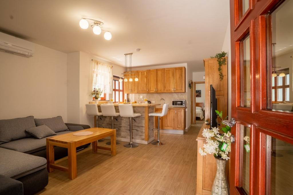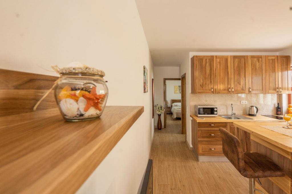 Villa Kalinić se sastoji od dva apartmana. Jedan se naziva Trešnja jer je 80% namještaja napravljeno od drveta Trešnje, a drugi se naziva apartman Orah, jer je napravljeno od drveta Oraha.Svaki komad namještaja je autentičan i ručno je napravljen od domaćina koji je jako dobar i iskusan stolar.Oba apartmana imaju jednu spavaću sobu sa King veličinom kreveta i veliki ormar u koji će stati sva vaša garderoba.Također ima kupaonicu koja ima veliku tuš kabinu i mašinu za pranje robe.Oba apartmana imaju poprilično veliku kuhinju koja ima svu potrebnu opremu za kuhanje koja je nova.Dnevni boravak se sastoji od udobnog kauča za gledanje TV-a, a koji ujedno ima ulogu pomoćnog ležaja.Izvan apartmana je jako prostrano za jelo ili za uživanje u piću na drvenim ležaljkama.