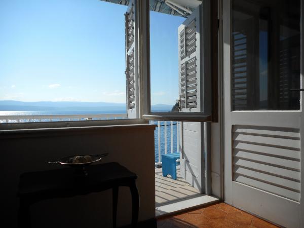Velika mjesto, čisto i prostrano, veliki balkon na moru! Živjeti s "duh " - (! Još od 1891. godine) na policama majstora književnosti i filozofa. Maske i drugi suveniri vlasnici su fascinantan, au isto vrijeme ne ometati slobodnu vježbe namještaja i aparata. Početna aparati potpuno novi i visoke kvalitete. Najbliža plaža udaljena je manje od 20m, ali pokraj vrata postoje još dva - puno zanimljivije :) Uz restoran - radije tiho i mirno, apsolutno ne ometa naše odmora, kao i luke - mali - samo za dobrobit mještana. Apartman ima klima uređaj, unatoč vrućini ga koristiti samo jednom, jer ovdje je ugodna, prirodna hladnoća. Kupaonice nije vrlo moderno, ali jako dobro održavan i funkcioniranje besprijekorno. Za nas sve hladno - iu neobvezujuće slobode zasebnim ulazom iz stražnje strane zgrade. Gospođa Jelena je šarmantna osoba govori tečno engleski, korisna i poštuje privatnost svojih gostiju. Osjećali smo se kao u hotelu. Neki 80 metara od apartmana nalazi se štand s palačinkama, pomfrit i hamburgere (razumno cijene). Iako je stan nema parking, nema problema s javnim parkingom, morate pričekati neko vrijeme i uvijek nađe nešto :) Ja visoko preporučiti to. Slike ne odražavaju šarm ovom mjestu! Ja bih dodao da je more tako čisto da balkona možete gledati ribe plivaju u njemu.