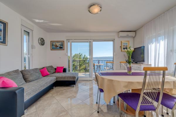 Mimica, ovaj intiman i šarmantno mjesto. Stan se nalazi u neposrednoj blizini mora, plaža s oblucima vrlo čisto s tuševima, u blizini nekoliko konoba, restoran, mini-market i zelene pijace (nalazi najbliži grada Omiša je dar - 6 km). Apartman / 1 / je vrlo velik - sastoji se od dnevnog boravka, spavaće sobe, sobe s tri kreveta, uključujući kreveta i mala soba s jednim krevetom, moderna i prostrana, potpuno opremljena / stroj za pranje posuđa i perilica rublja / kuhinja sa svim potrebnim priborom, Stan je dobro održavan i čist, s velikom terasom s pogledom na more i sela, osim tu su suncobrani, madraci, peraje, itd. na plaži. Za posjetitelje parking s garažom i individualne roštiljem. Vlasnik je vrlo lijepo i ugodno - pozdrav  PREPORUČENO Jola, Maciek i sin Alexander