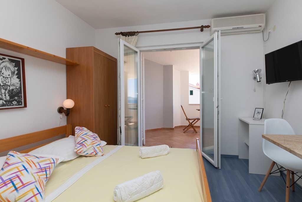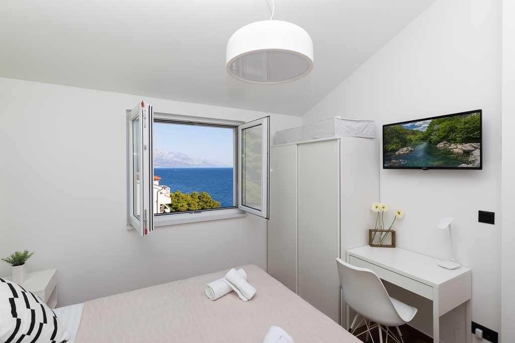 Apartmani Ban nalaze se u malom turističkom mjestu Medići poznatom po prekrasnim plažama. U kući se nalaze 3 apartmana. Imamo dva studio apartmana za dvije osobe. Svaki studio apartman ima veliki balkon sa prekrasnim pogledom na more, satelitsku TV, klima uređaj, WiFi, kuhinju i kupaonicu. U potkrovlju se nalazi apartman za šest osoba. Roof top apartman ima zaista nevjerovatan pogled na more i otoke. Apartman ima dvije sobe, dva kupatila, dva balkona i veliki dnevni boravak sa kuhinjom. Penthouse sa četiri zvjezdice ima veliki TV, satelitske programe i WiFi internet. Svaka prostorija je klimatizirana. Kuhinja je potpuno opremljena sa velikim frižiderom, pećnicom, svim potrebnim priborom i perilicom posuđa. Gosti na raspolaganju imaju i mašinu za pranje rublja. Veliki parking se nalazi odmah pored kuće. Plaža je udaljena samo 40 metara. Plaže su brojne i prekrasne. Dvije velike plaže imaju beach bar, ostale plaže su manje i intimnije.