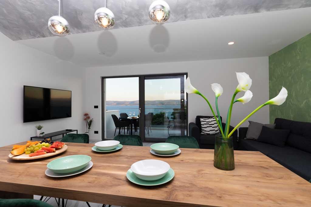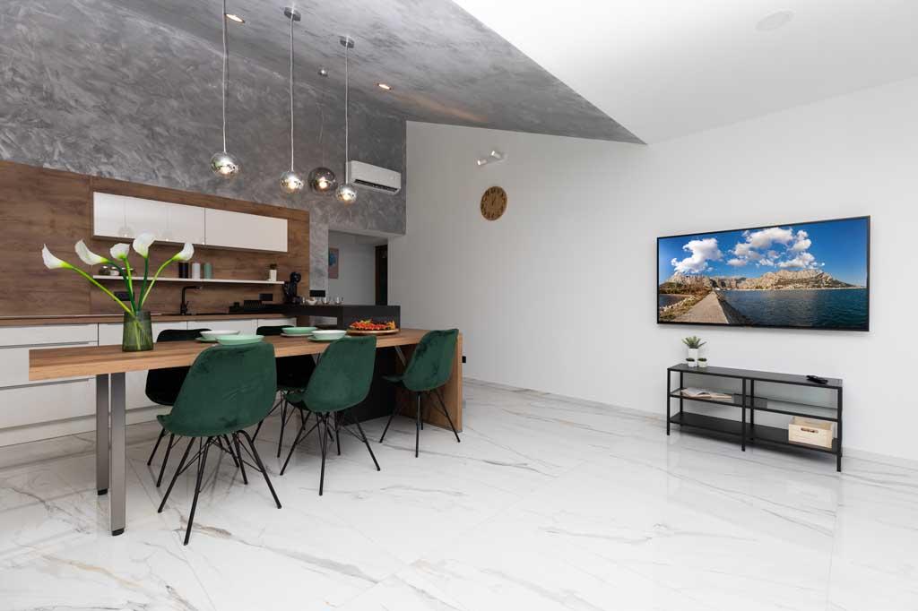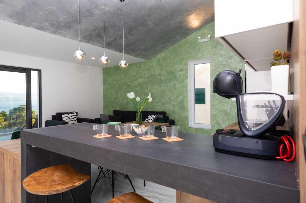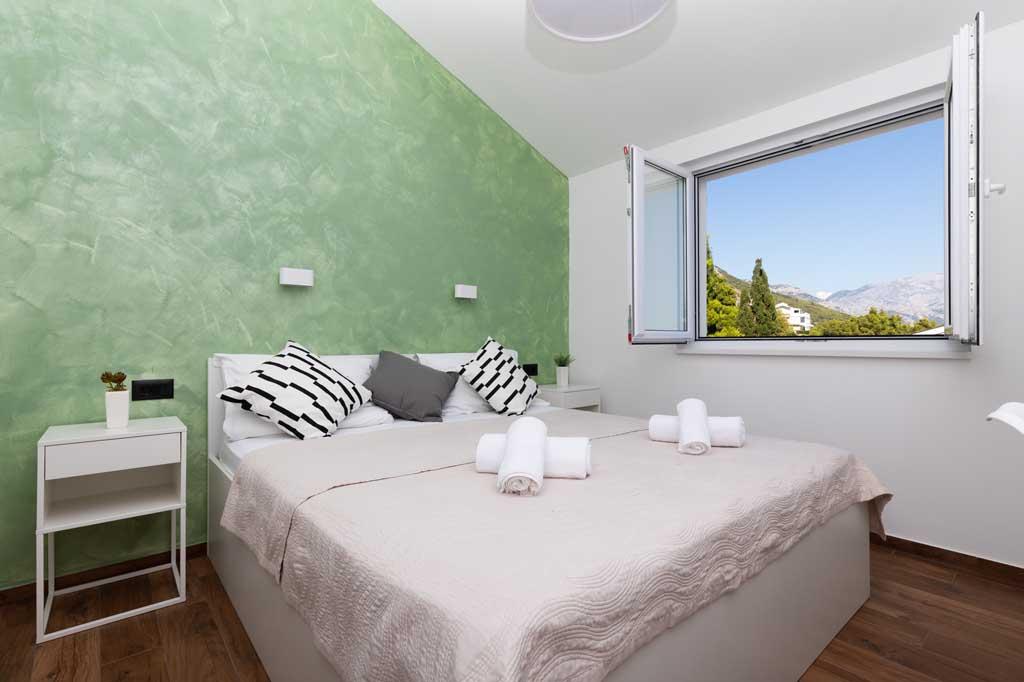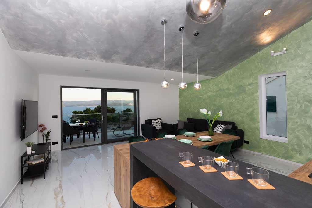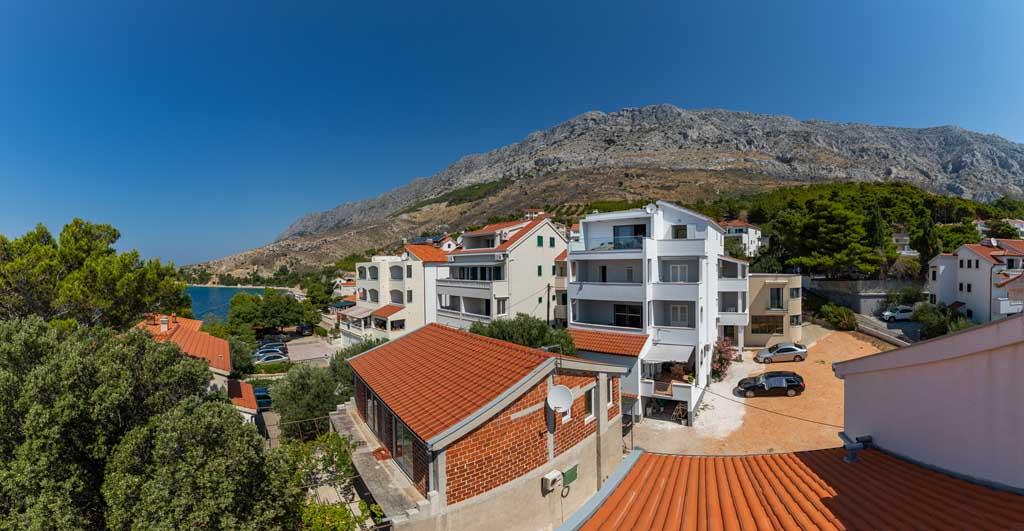 Veliki supermarket i pošta su udaljeni samo 700 m. Najbliži grad Omiš je udaljen 10 km. Grad Split je udaljen 30 km.