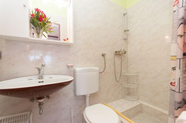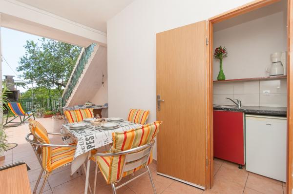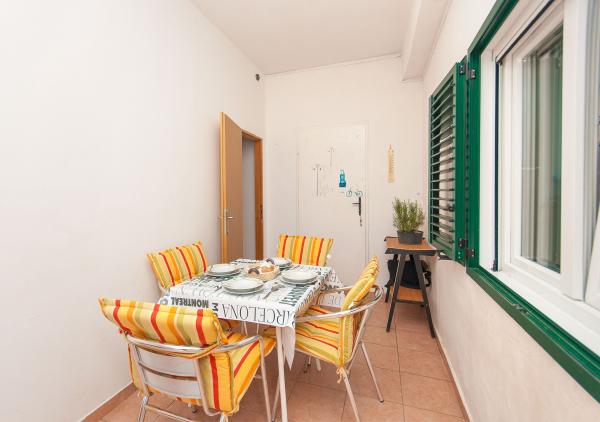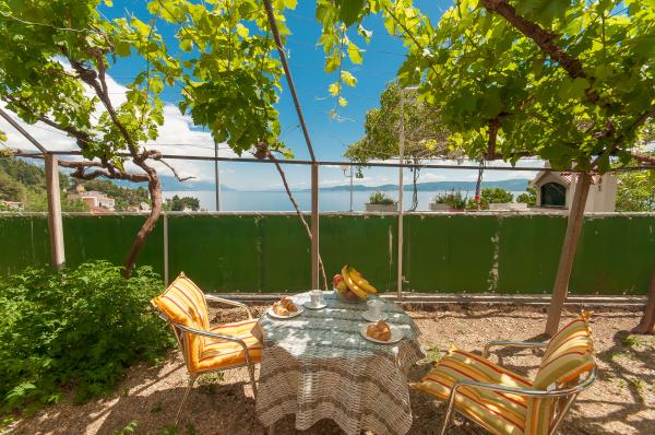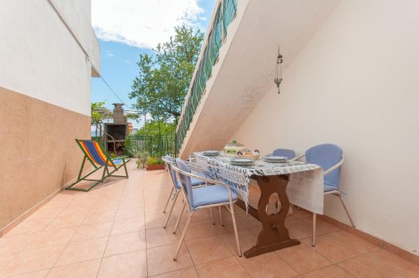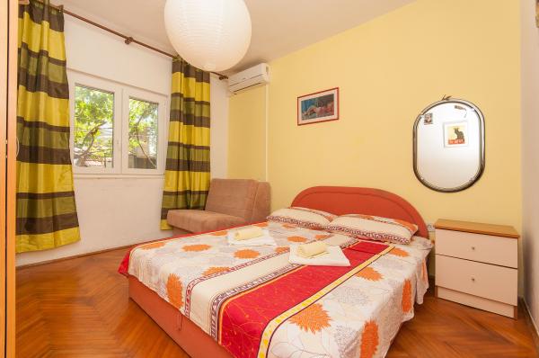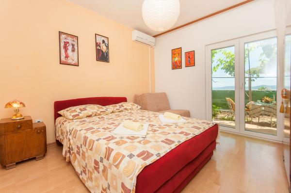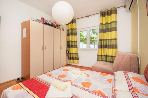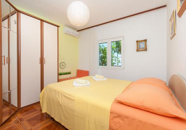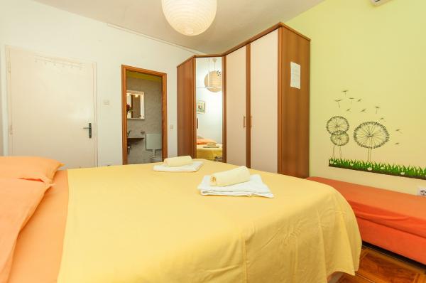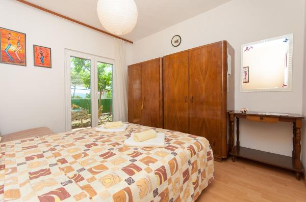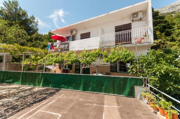 Apartmani su smješteni u malom, mirnom dalmatinskom mjestu, idealnom za obiteljski odmor i nezaboravne uspomene. Apartmani se nalaze s južne strane kuće i imaju pogled na more. Udaljenost od mora i prve plaže iznosi 200 m. Prvi apartman 4 2 se sastoji od wc-a, kuhinje i 2 sobe, obje opremljene klimom. Kuhinja se nalazi ispred kuće tako da ne zagrijavate prostor u kojem boravite. Drugi apartman 2 1 se sastoji od 1 sobe sa klimom, wc-om i kuhinjom, koja se također nalazi ispred kuće. Sa južne strane kuće se nalazi veliki vrt pod lozom koja tvori prirodan hlad, sa mogućnošću korištenja roštilja. Besplatni parking je dostupan u okviru objekta. Ulaz u kuću je zajednički. Sobe se nalaze sa južne strane kuće, a wc za apartman 4 2 se nalazi preko puta soba u hodniku. Wi-Fi je dostupan u cijelom objektu.