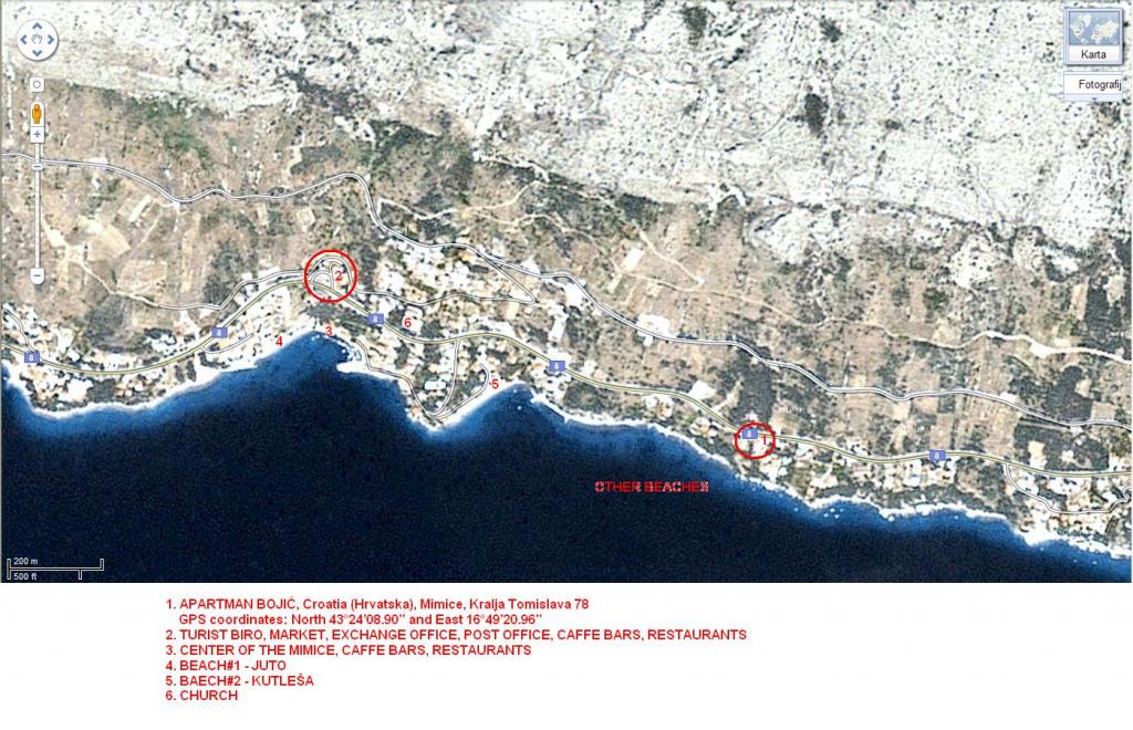 Apartmani Bojić nalaze se u Mimicama 12km od Omiša prema Makarskoj, na granici s mjestom Marušići. Od magistralne ceste udaljeni su 15m, a od samog centra mjesta 500m. Kuća se satoji od tri apartmana, svi apartmani imaju balkone sa pogledom na more,Pružaju ugodan, siguran i tih odmor, za cijelu obitelj, udaljen od središta mjesta, sa plažom bez mnoštva kupaća. More je izuzetno čisto (podmorska vrela i struje) za kupanje i ronjenje. Engleski jezik govorimo jako dobro,u sporazumijevanju koristimo češki, talijanski i njemački jezik. Klima uređaj, Wi-fi, boravišna pristojba i parking uklljučeni u cijenu boravka. Pomažemo gostima pronaći potrebn informacije, te po dogovoru organizirati dodatne aktivnosti.