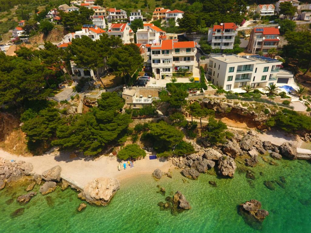 Moderno uređeni apartmani nalaze se u mjestu Medići - Mimice, udaljeni od mora 20 metara. Apartmani imaju balkone s prekrasnim pogledom na more i otok Brač. Ispred kuće su terase okružene mediteranskim biljem i zelenilom, za uživanje i opuštanje u danima vašeg odmora. Doživjeti napad gusara na naše mjesto, zaroniti u unutrašnjost davno potopljenog broda, probati specijalitete našeg kraja na gastro večeri ili ići u ribolov s ribarima na već tradicionalnoj ribarskoj večeri to su iznenađenja zbog kojih svake godine imamo sve više oduševljenih gostiju. Uz jedrenje na dasci, izleti brodom do obližnjeg otoka Brača, planinarenje do vrha Kosmatica - Mimice, 612m nadmorske visine i sv Vid - Lokva Rogoznica, 639 m nadmorske visine samo su neke od mogućnosti za aktivan odmor. Nadamo se da smo vas zainteresirali, da se ipak vidimo u Medićima!