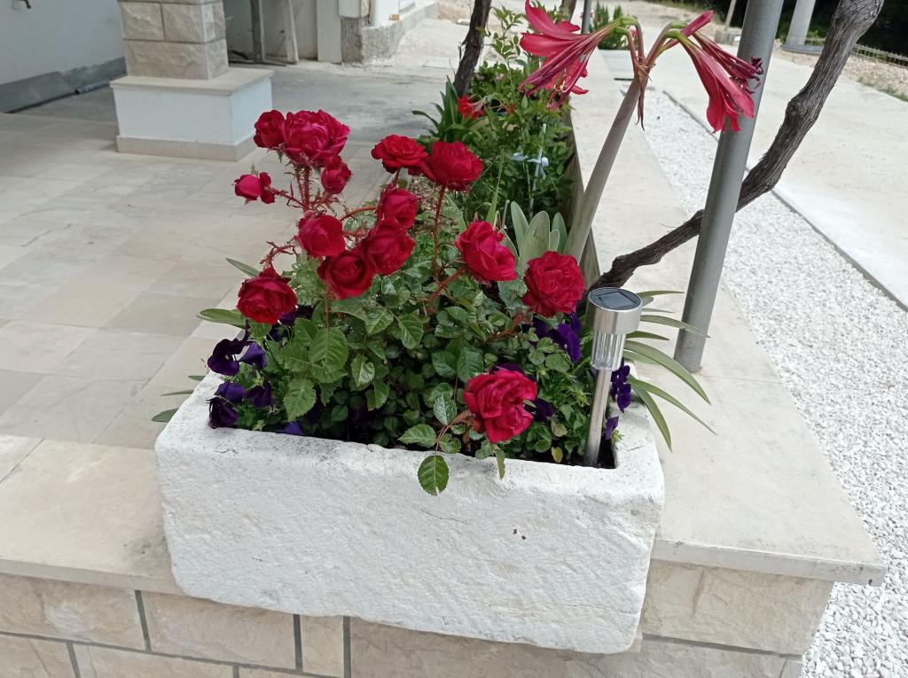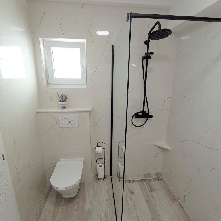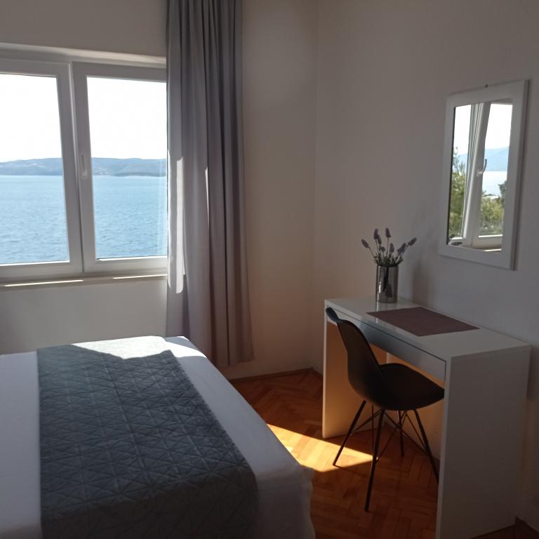 Bili smo ovdje dva puta, smještaj je prekrasan, čist, potpuno opremljen sa klimom u svakoj sobi, perilicom suđa i ono što najviše cijenim je perilica rublja. Mirko, Danijela i njihova mama su divni, ljubazni ljudi, uvijek nasmijani i uslužni. Pogled sa terase je nezamjenjiv. Nemam što kritizirati. Prednost je što ćete se vratiti utegnute figure jer je put od plaže dosta brdovit, ali mislim da je i to prednost.