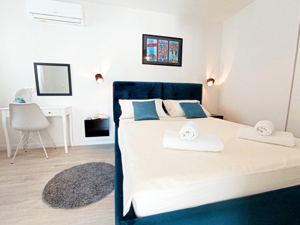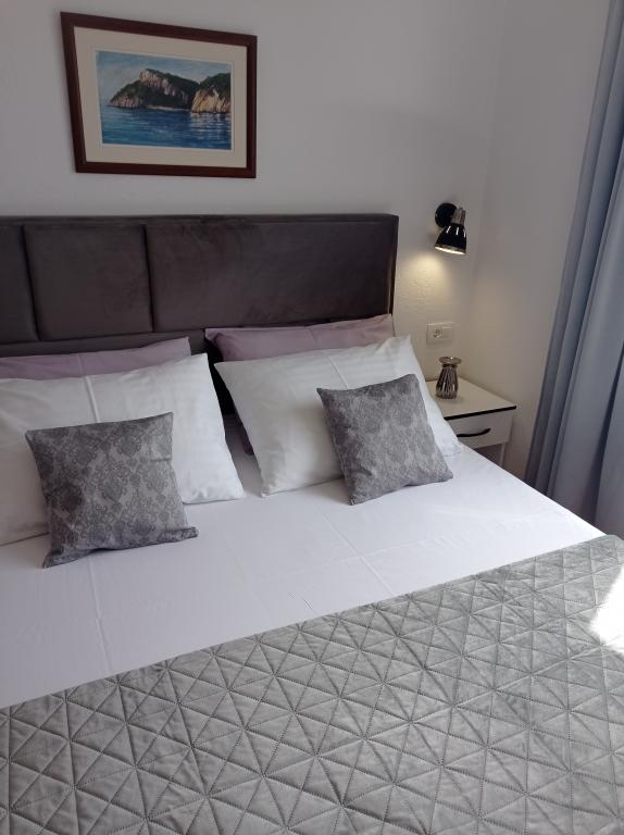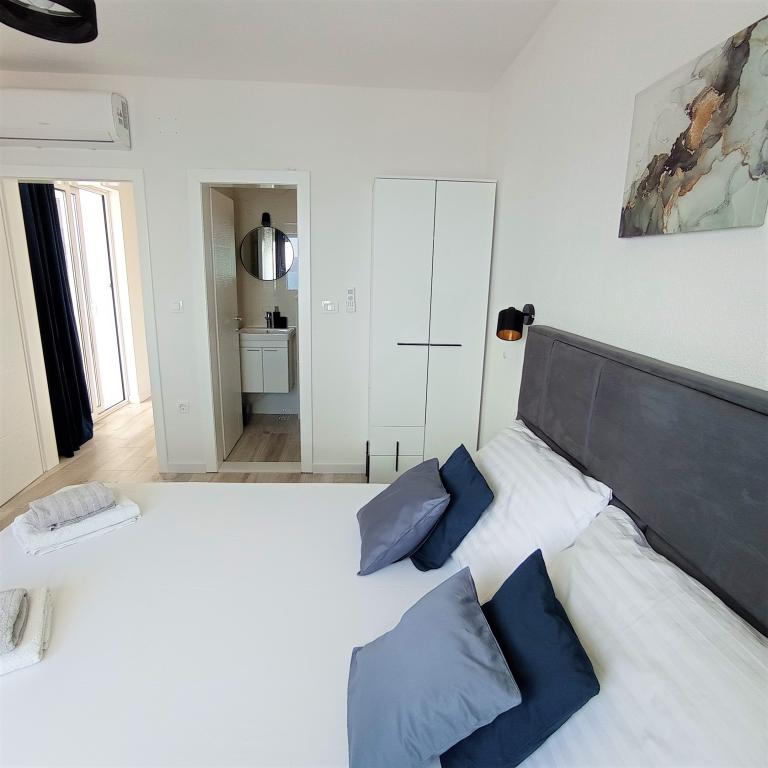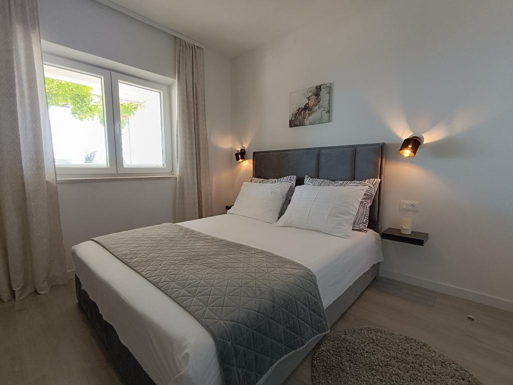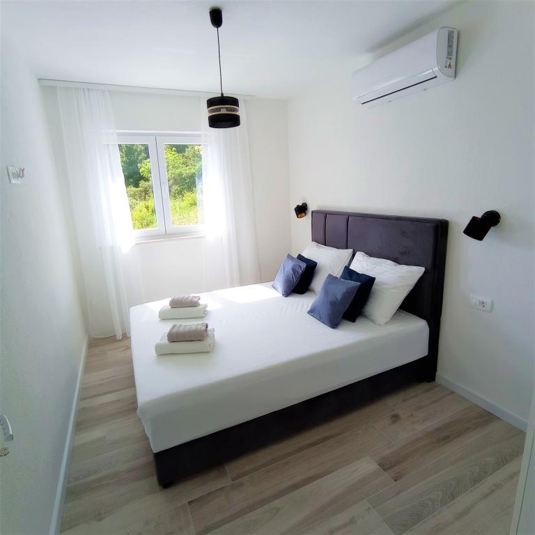 A4 superior -novi, moderan apartman na 2. katu kuće sa predivnim pogledom na more. 1 spavaća soba, 2 kupaonice, veliki dnevni boravak i kuhinja, veliki balkon. Kompletno opremljen i klimatiziran. A4+2 superior- novi, moderan apartman na 2. katu. Dvije spavaće sobe, 2 kupaonice, kuhinja, blagovaonica, dnevni boravak i velika terasa sa pogledom na more. Klimatiziran u svakoj sobi. A4+4 -velik i prostran apartman na 1. katu kuće. Kompletno opremljen i klimatiziran u svakoj sobi. Sastoji se od dvije velike spavaće sobe (sa kupaonicama), dnevne sobe, kuhinje, blagovaonice, tri kupaonice, terase i balkona sa predivnim pogledom na more i otoke. A4+1 -novi moderni apartman u prizemlju. Sastoji od dvije prostrane spavaće sobe, kupaonice te kuhinje sa blagovaonicom. Sa velike terase koja je u prirodnom hladu, pruža se pogled na more i otoke. A2+2 -apartman u prizemlju, sa terasom. Sastoji se od spavaće sobe, kupaone, predsoblja, kuhinje i blagovaonice sa ležajem. Klimatiziran.