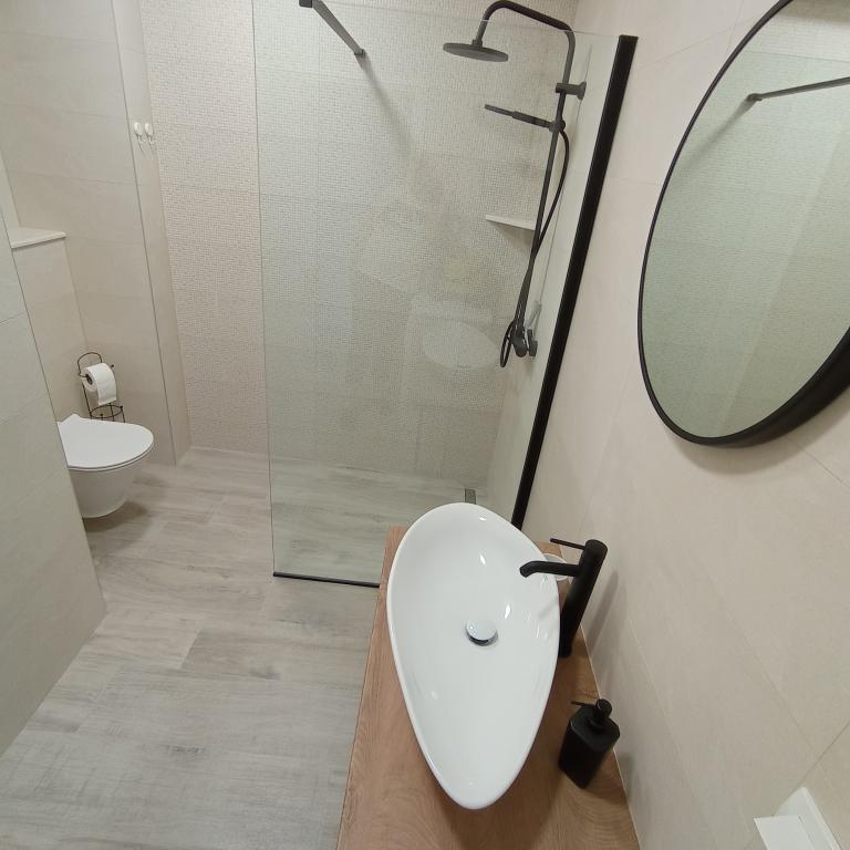 Oduševljena sam ovogodišnjim boravkom u Hrvatskoj u Danijelinom i Mirkovom apartmanu! Stan renoviran i super namješten, opremljen. Raspored spavaće sobe i dvije kupaonice omogućio je ugodno funkcioniranje dvije obitelji u stanu. Savršeno smještena terasa s pogledom na more - nije susjedna drugim terasama davala je osjećaj privatnosti kao u samostalnoj kući. Jako ljubazni domaćini, s kojima smo imali jako dobru komunikaciju od samog početka rezervacije i uplate akontacije. Srdačno su nas dočekali s domaćom orahovicom, a na kraju boravka počastili smo se ukusnim palačinkama koje je napravila Mirkova mama i domaćom rakijom :) Do najbliže prekrasne plaže prilagođene djeci pješice do 10 minuta! U blizini plaže nalaze se lijepi barovi i pubovi s atmosferom i vrlo dobrom hranom i odličnom uslugom, kao što je Emi bar & restoran. U blizini vrijedi posjetiti i staru jezgru Mimića s lijepim ribljim restoranom Carevi dvori. Sve u svemu, mjesto savršeno za opuštajući odmor :)