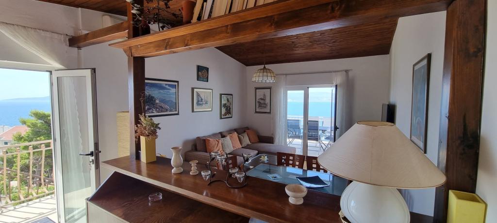 Apartman The view smješten je u naselju Medići 100 metara od mora, idealan je za bijeg od svakodnevnog urbanog života i uživanje s obitelji ili prijateljima. Jednosobni apartman se proteže na 42 m2 unutarnjeg prostora te 21m2 vanjskog prostora. Velika vanjska teraca vam pruža idealan pogled na otok Brać i Jadransko more koja je savrsena za uživanje u vrućim ljetnim danima i ugodnim te mirnim noćima.