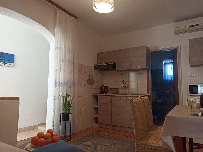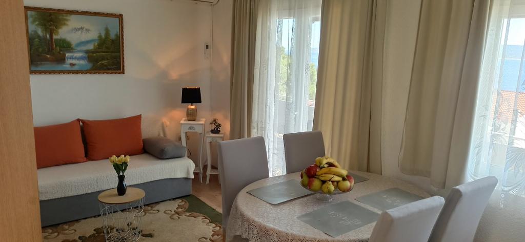 Udobni apartmani moderno uređeni sa pogledom na more.Apartmani koje nudimo su : A 4 - apartman sa dvije spavaće sobe,moderno namješten,opremljen sa perilicom rublja, ima dva klima uređaja,sa predivnim pogledom na more (na drugom katu).A 2+2(prizemlje) - novoopremljeni apartman sa jednom spavaćom sobom i sa kaučem koji je na razvlačenje u kuhinji,također ima predivan pogled na more i veliku terasu ispred,udoban za četiri osobe. A2 - u prizemlju i A2 -na prvom katu su za dvije osobe također udobni i sa pogledom na more. Blizina gradova Omiš-11km, Split -36km, Makarska-23km, Brela i Baška Voda 13km - sve u malim udaljenostima.Također možete uživati i u kvalitetnom provodu uz roštilj gdje ćete moći pripremiti ukusne obroke za svoju obitelj, a za sve goste parking se nalazi ispred objekta. Za sva pitanja stojimo Vam na raspolaganju.