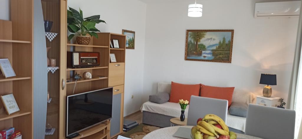 Moj suprug i ja smo odlučili otići 3 dana na mini odmor, i odabrala sam najljepši apartman koji sam mogla zamisliti! Mirno mjesto posebno za porodicu i tko ne voli gužve. Terasa s pogledom na more ostavlja bez daha, čistoća je na nivou! Sve sto vam je potrebno za odmor nebitno od koliko dana. Plaža je udaljena 40ak metara - treba se samo prijeći glavna cesta. Kuhinja jako praktična, posjeduje sve sto je potrebno, krevet, klima... - ma sve čista 10ka. Mirela je veliki domaćin, jako ljubazna žena, prijatna i dostupna u svako doba. Tople preporuke, jedva čekam opet doći!