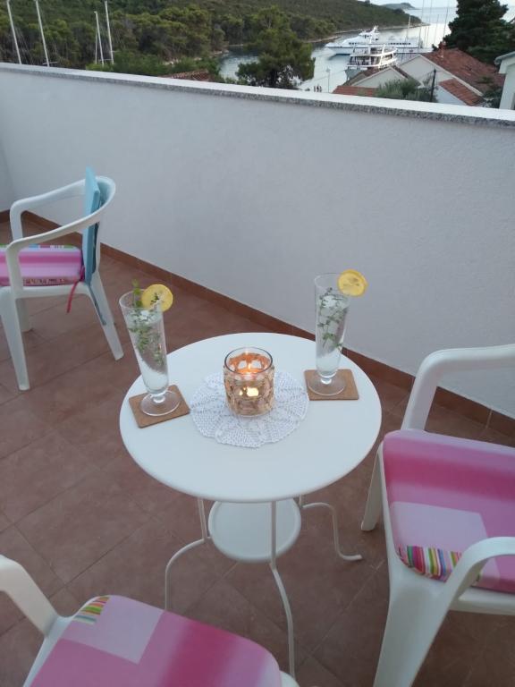 Studio apartmani Bonaca nalaze se u neposrednoj blizini luke, drugi red do mora, u mirnom predjelu s pogledom na more. Apartmani su idealni za parove ili prijatelje. Oba apartmana imaju zajedničku terasu. Apartmani su klimatizirani, besplatan Wi-fi. Apartmani se nalaze 2min hoda do luke. U neposrednoj blizini nalazi se caffe bar, 2 restorana i pizzeria, te maleni kiosk s voćem i povrćem. Do centra mjesta je 10min pješke, isto tako i do plaže. Svaki apartman može primiti 2 osobe. Nije pogodno za malu djecu. Kućne ljubimce ne primamo. Najmanja duljina boravka je 7 dana.