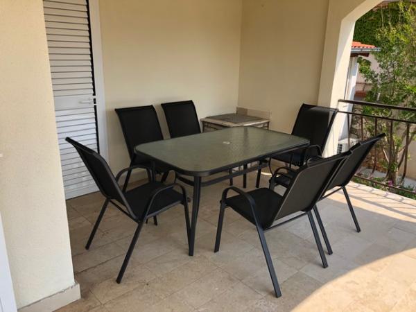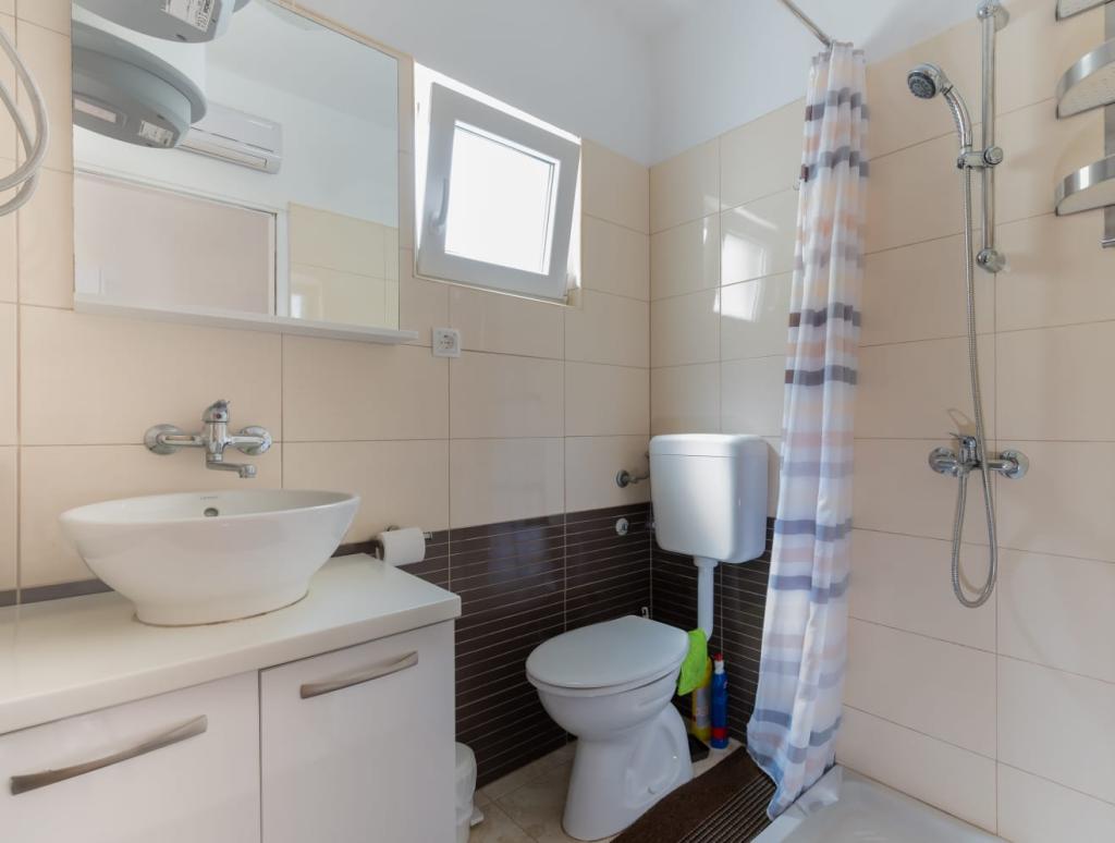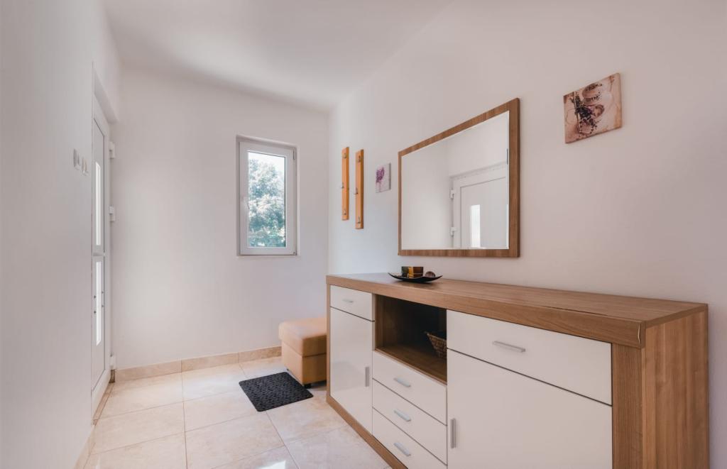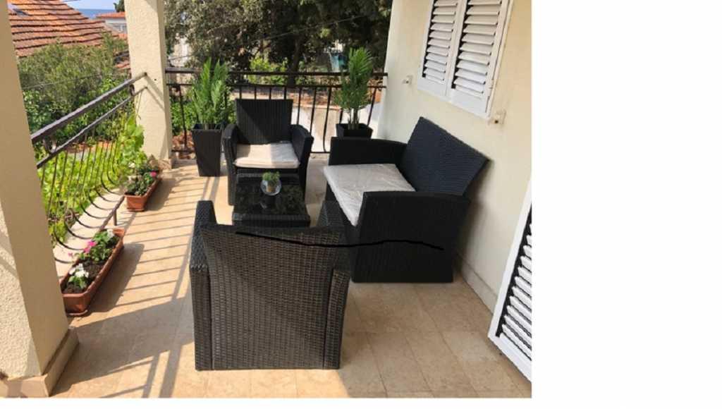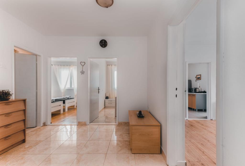 Lijepi i komforno uređeni apartman od 100 m2, idealan za odmor i opuštanje, sa 3 spavaće sobe, 2 kupatila, velikim dnevnim boravkom te velikom terasom koja gleda na more. Objekt se nalazi drugi red od mora, u blizini se nalazi plaža, kafić, mala tržnica, pizzeria te restoran.