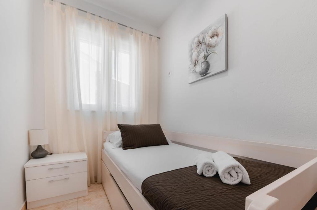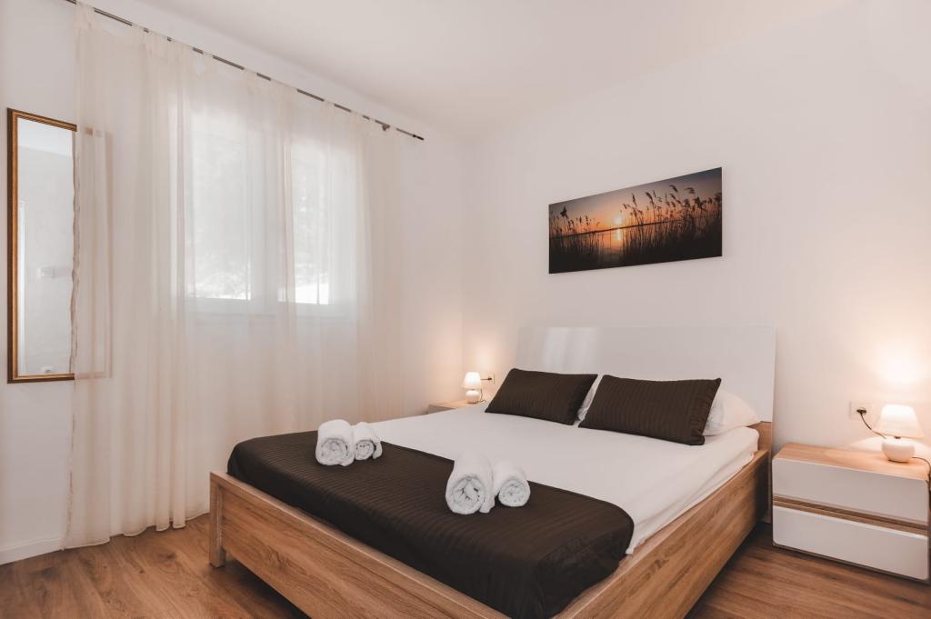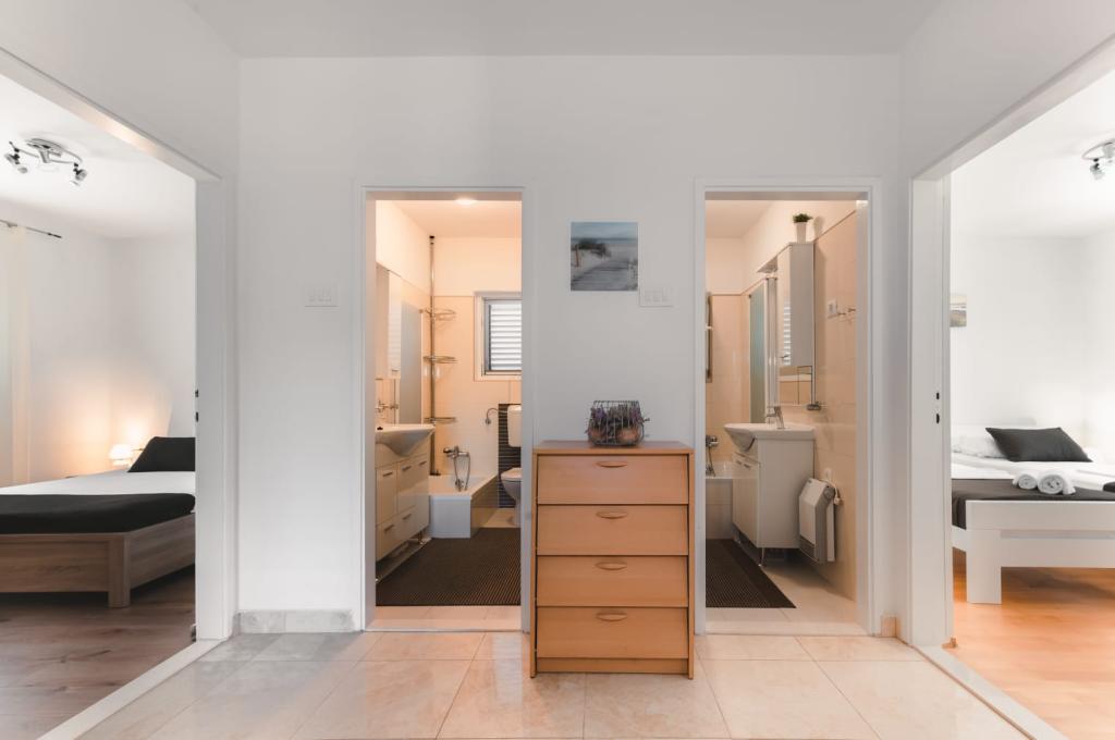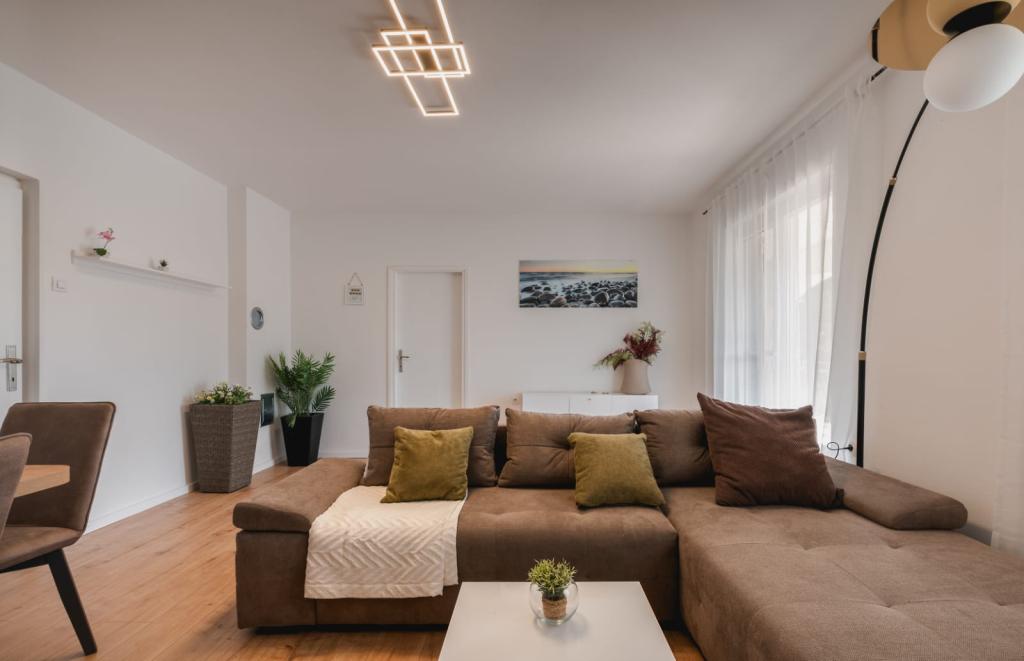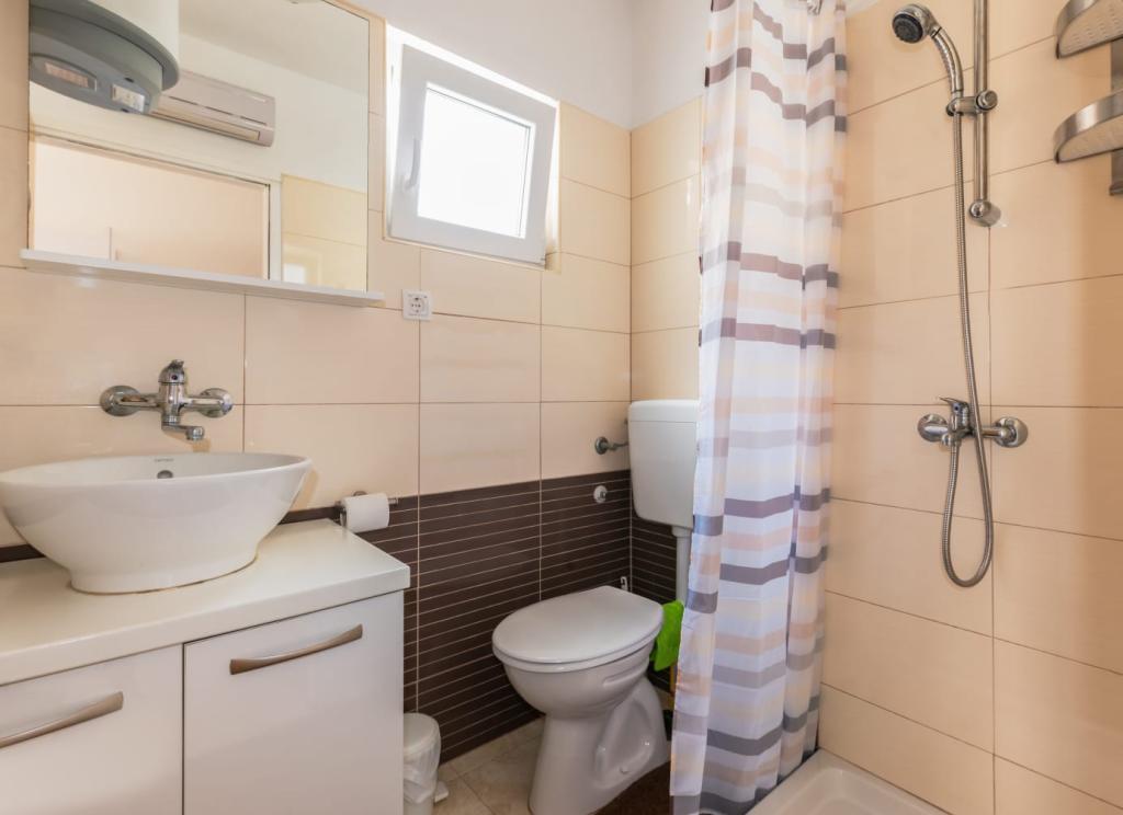 Lijepi i komforno uređeni apartman od 100 m2, idealan za odmor i opuštanje, sa 3 spavaće sobe, 2 kupatila, velikim dnevnim boravkom te velikom terasom koja gleda na more. Objekt se nalazi drugi red od mora, u blizini se nalazi plaža, kafić, mala tržnica, pizzeria te restoran.
