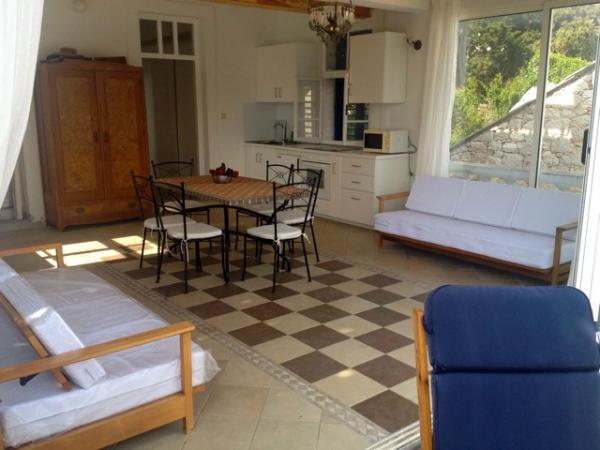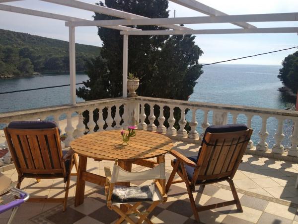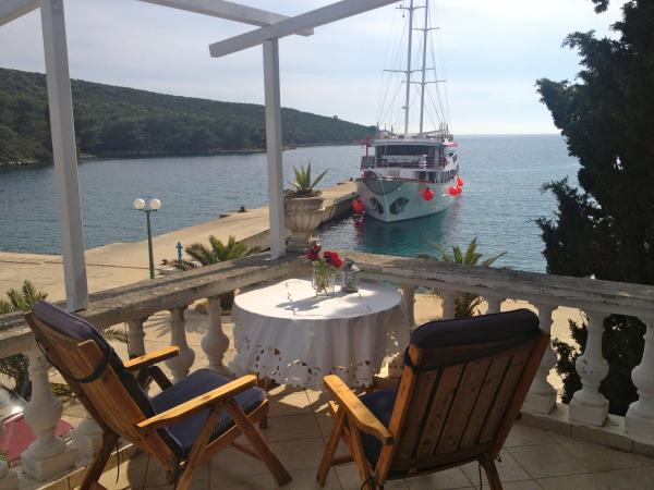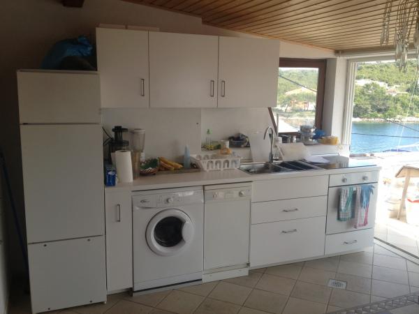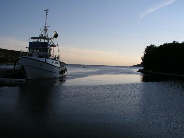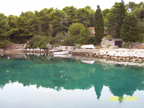 Ribu lovi lokalni ribar pa dnevno najčešće ima svježi izbor od malih vrlo povoljnih, do specijaliteta, međutim mi koji more poznajemo znamo da sve što je svježe iz mora je samo po sebi specijalitet pogotovo uz vrhunsko ulje. Ovdje kažu: “ki to more platit” drugim rječima: takvu kvalitetu ne možes dobiti ni za kakav novac. Na otoku mi imamo idealnu poziciju, čisto more na dva metra, brodić vezan ispred kuće, borovu šumu uz more za ležaljku od mreže, kafić na 30 metara. Ujutro ispred kafića stižu topli kroasani, svježi i topli burek i naravno kruh a također i riba. Sa svih prozora i naravno s terase vidi se more, pučina i nebo i sve promjene boja na horizontu od svanuća do sumraka i noći sa zvijezdama. Dnevni boravak, zbog toga je cijeli u pomičnim staklenim stijenama oko 3m visine i 11m uokolo. Posebna prednost ove uvale je odlična pozicija s obzirom na vjetar. Naime, uvala je zaštićena od bure i prilično od juga. Zbog blizine mora, jutra i popodneva su iznimno ugodna uz prekrasne bonace, a od 10 sati do 17 sati kad je sunce najjače stalno puše ugodni maestral tako da se i temperatura od čak 40°C ne osjeća, odnosno ugodna je. Ako uz to dodate da ne morate izlaziti iz šlapa i kupaćeg kostima i nigdje ići autom, svakom tko je probao osjećaj je bajkovit.