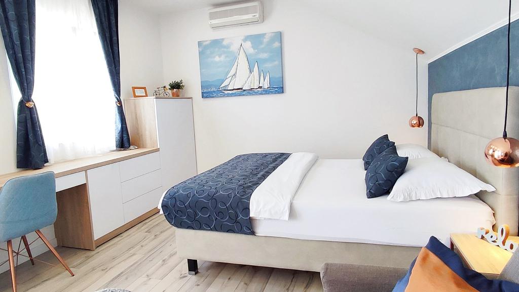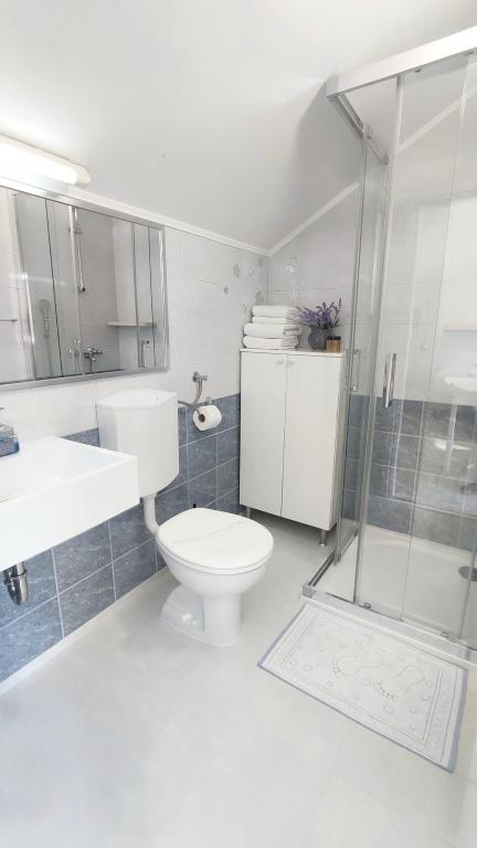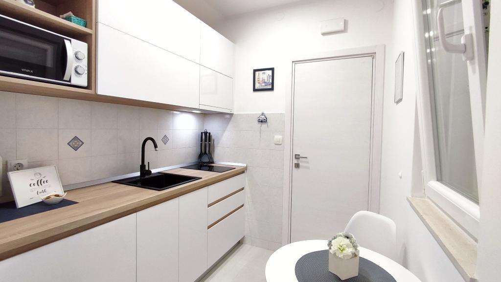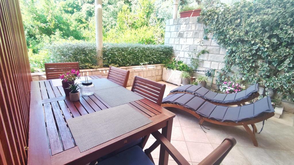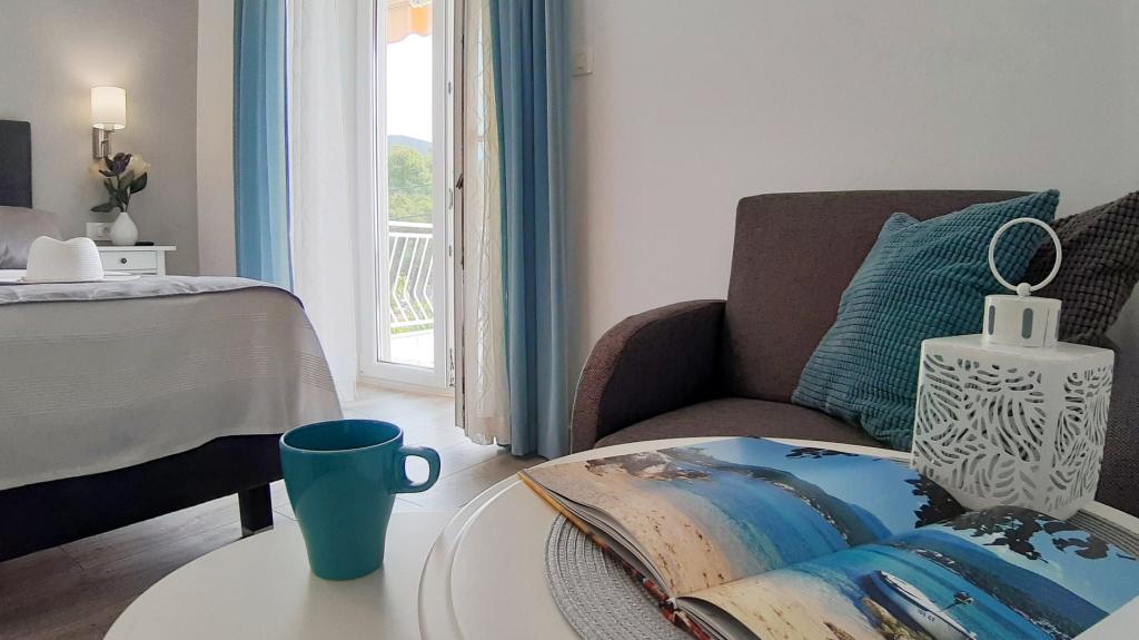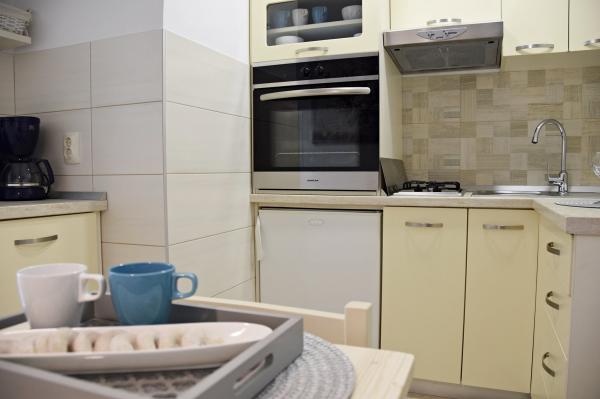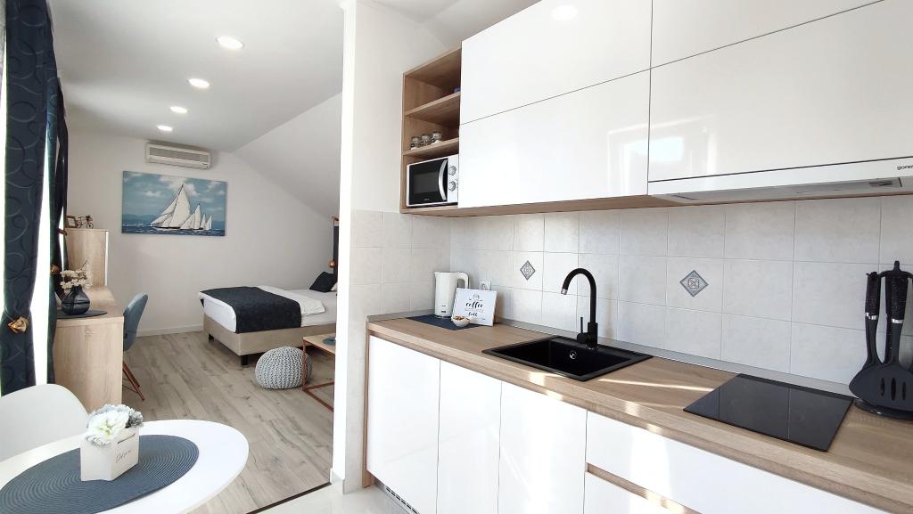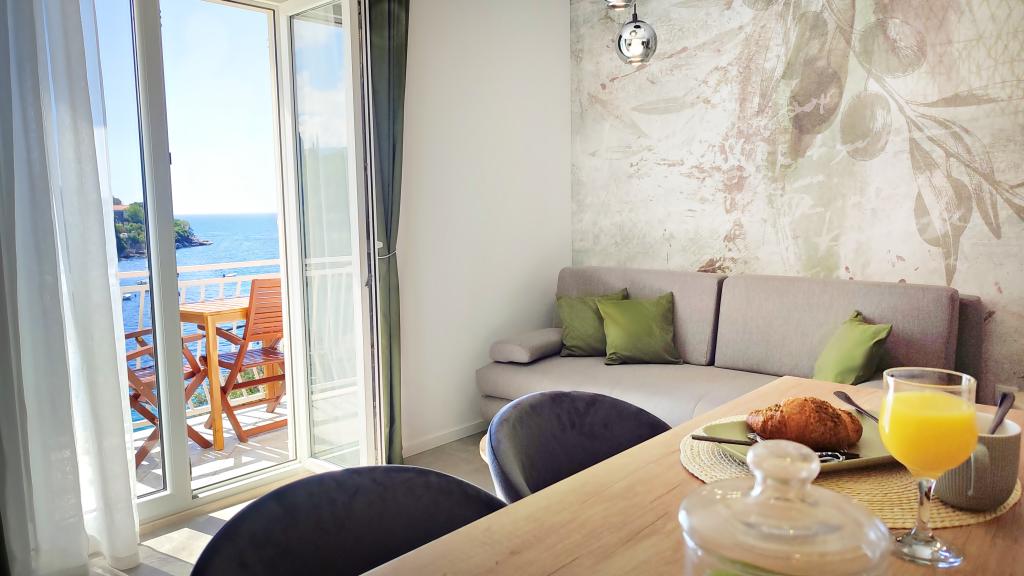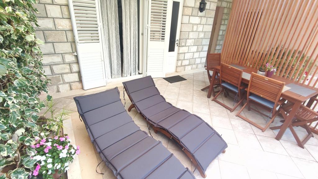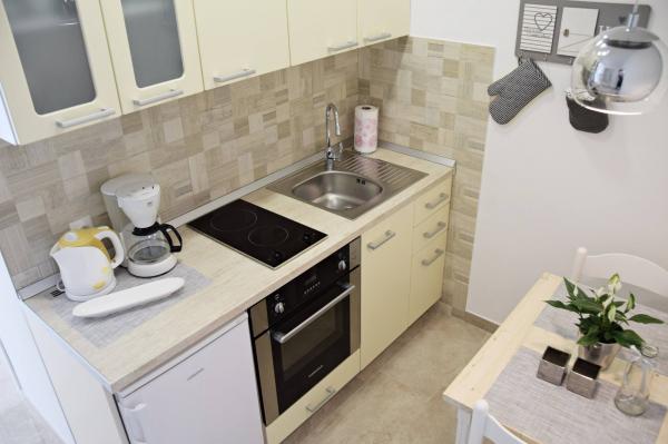 Krenut ću od domaćina, jer su divni. Karmen i cijela porodica će vaš odmor učiniti izuzetno prijatnim. Tu su za svako pitanje i svaku vrstu pomoći. Dočekao nas je čist i uredan, lijepo osmišljen apartman, kompletno opremljen svime što je potrebno u kuhinji i kupatilu. Peškiri i krpe se redovno mijenjaju, na svaka dva dana. Prave i fino maslinovo ulje, koje možete da kupite u objektu. Apartman je odlično pozicioniran, s vlastitom malom kamenom plažom na kojoj je hlad u popodnevnim časovima. Hlad možete da imate i cijeli dan, ako se pozicionirate ispod drveta. Roštilj na plaži smo mogli da koristimo bilo kad, na raspolaganju je gostima. Obližnji restoran je na 3 koraka pored objekta i ima dobru kuhinju, sa standardnim cijenama za hrvatsko primorje. Manja radnja je na 3 min hoda, ali je dobro opremljena. Kod radnje je i manja pješčana plaža, a veća na 10-tak min laganog hoda . Cijelo mjestašce je lijepo i tiho, idealno za miran odmor.
