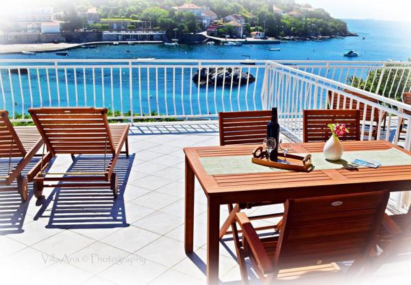 Villa Ana nalazi se u prekrasnom malom mjestu Moluntu, smještena u neposrednoj blizini mora sa vlastitom plažom, te privezištem za čamce. Parking u hladu ispred kuće na raspolaganju je svim našim gostima. Naši konforni apartmani okruženi sa mediteranskom vegetacijom, mir, tišina i bistro more Vaš će odmor učiniti ugodnim i nezaboravnim. Nudimo Vam mjesto gdje ćete se osjećati kao kod svoje kuće, te ćete se opet rado vratiti , a mi ćemo biti sretni što možemo biti Vaši domaćini. Svi apartmani su klimatizirani, svaki od njih ima SAT-TV, centralno grijanje, te potpuno opremljenu kuhinju, balkon ili terasu sa pogledom na more.