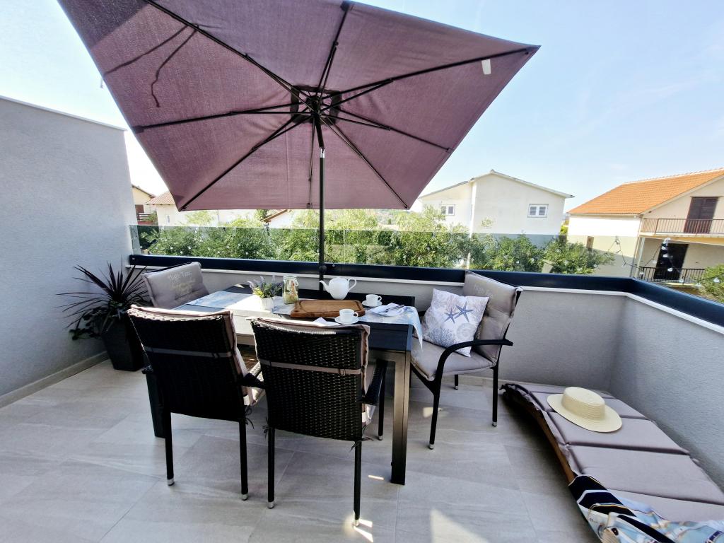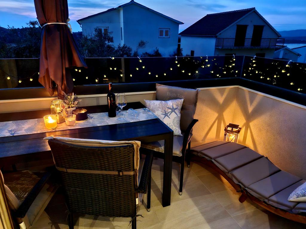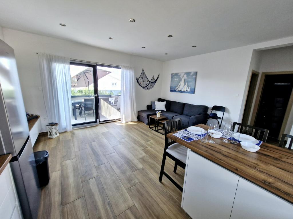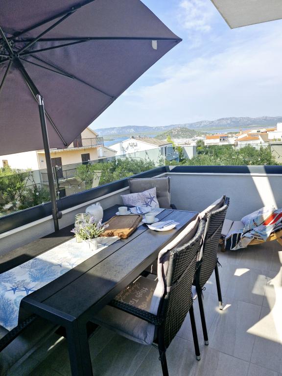 Apartman se nalazi na otoku Murteru u mjestu Murter. Kopnom je povezan mostom čime je prometna komunikacija u potpunosti osigurana. Apartman se nalazi u novouređenoj kući, a njegova površina iznosi 50 m2. Apartman prima do 3 osobe (2+1). Čini ga prvi kat kuće smještene u mirnoj ulici i kao takav pruža mir i diskreciju za ugodan odmor. Sastoji se od kuhinje/blagovaone/dnevnog boravka, spavaće sobe, kupaone i balkona s pogledom na more. U spavaćoj sobi nalazi se bračni krevet (dimenzije 160x200cm), a u dnevnom boravku udoban trosjed na razvlačenje. Opremljen je sa svim kućanskim aparatima, 4k android i satelit televizijom, internetom (Wi-Fi), klimom te parkirnim mjestom pod videonadzorom. Perilica rublja dostupna je za održavanje čistoće vašeg rublja tijekom boravka u našem apartmanu. Objekt nije predviđen za pušače, ali posjeduje balkon na kojem je pušenje dozvoljeno. Jako puno pažnje polažemo na održavanje apartmana.