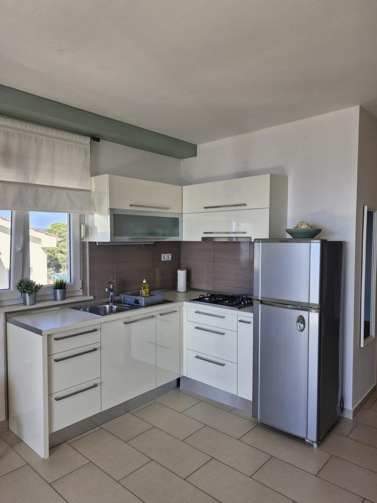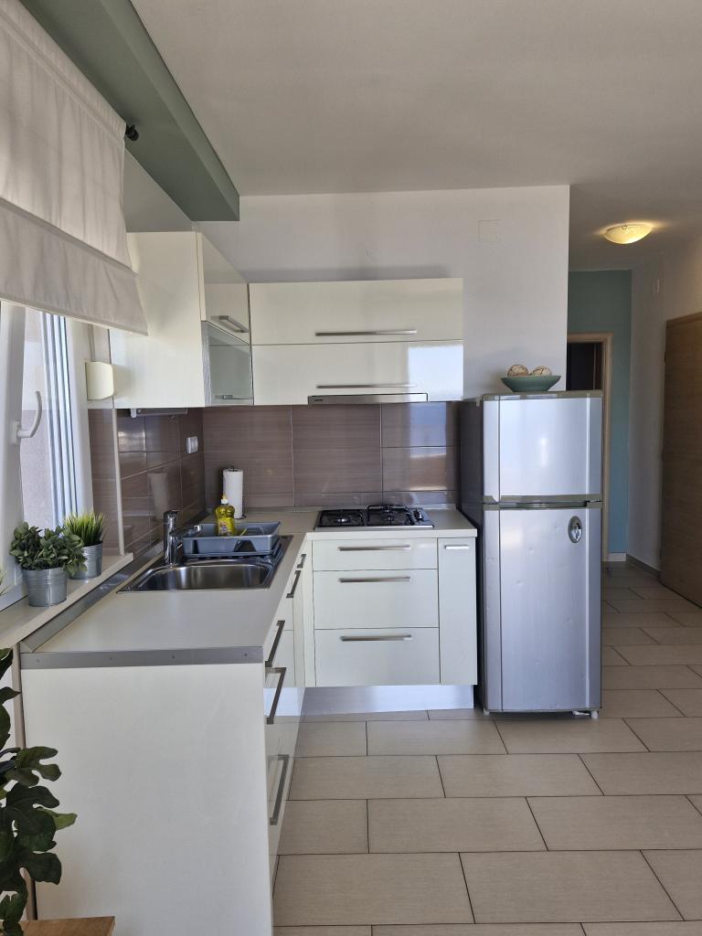 Apartman s pogledom na more nalazi se na udaljenosti 5 minuta hoda od plaže Slanica. Nalazi se na katu, te sadrži spavaću sobu za dvije osobe te kauč na razvlačenje na kojem mogu spavati još dvije osobe. Apartman sadrži klima uređaj, satelitsku tv te wi-fi. Kućni ljubimci nisu dozvoljeni.