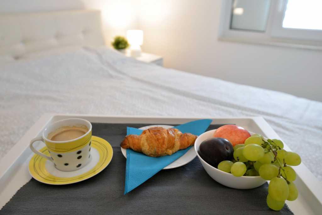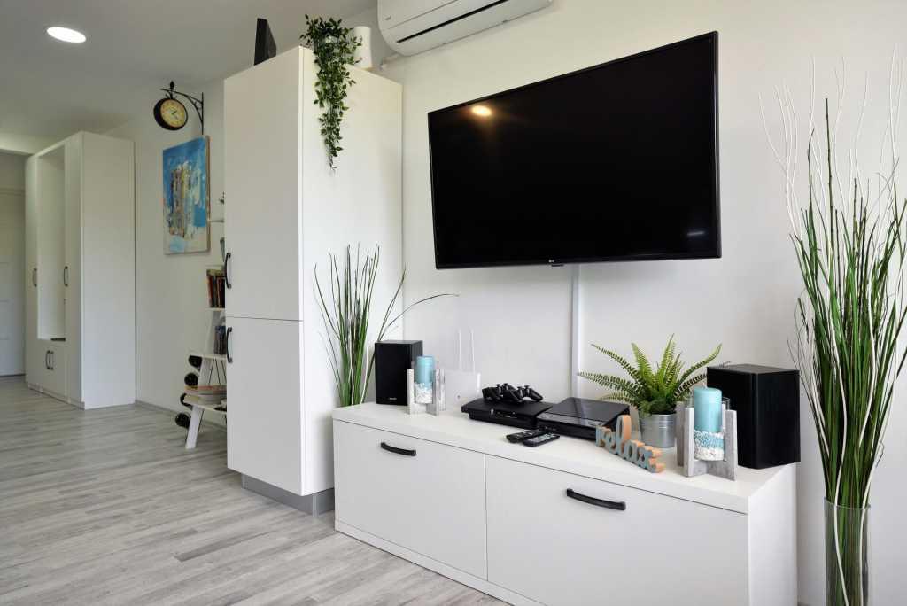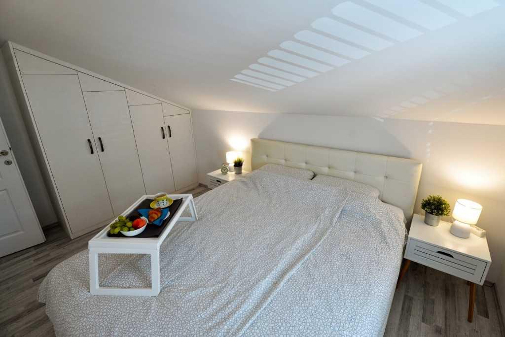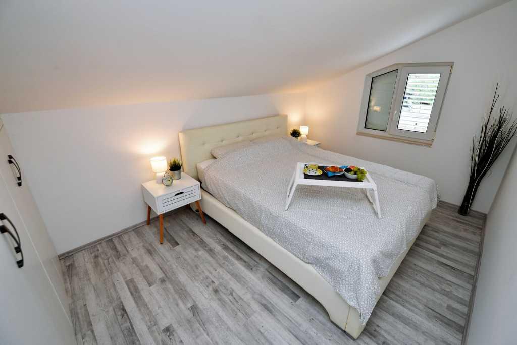 Svega nekoliko metara vas dijeli od izlaska iz apartmana do ulaska u more. Ispijajte jutarnju kavu sa pogledom na najljepšu plažu Otoka Murtera - Slanica. Osigurali smo jedno natkriveno parkirno mjesto na čuvanom parkingu ispred samog ulaza u zgradu kako bi vaš automobil bio u hladu i vama na oku. Apartman prima 5 osoba (4+1). Dovoljno je prostran i opremljen da vam pruži sve nužno što vam treba za odmor koji zaslužujete i da se osjećate kao kod kuće. SPAVANJE Apartman sadrži udoban bračni krevet u spavaćoj sobi (160x200cm). Trosjed na razvlačenje sa osiguranim anatomskim nadmadracem (240x151cm) te jedan pomoćni ležaj koji se montira po potrebi. Madraci i posteljina pomno su birani kako bi se osigurala vrhunska kvaliteta materijala pa tako i sna. Prostrani dnevni boravak je prostorija u kojoj ćete provoditi većinu svog vremena u apartmanu, pa smo ga uredili kako bi bio udoban da se osjećate kao kod kuće. Na raspolaganju vam je besplatan WiFi, 4k TV .