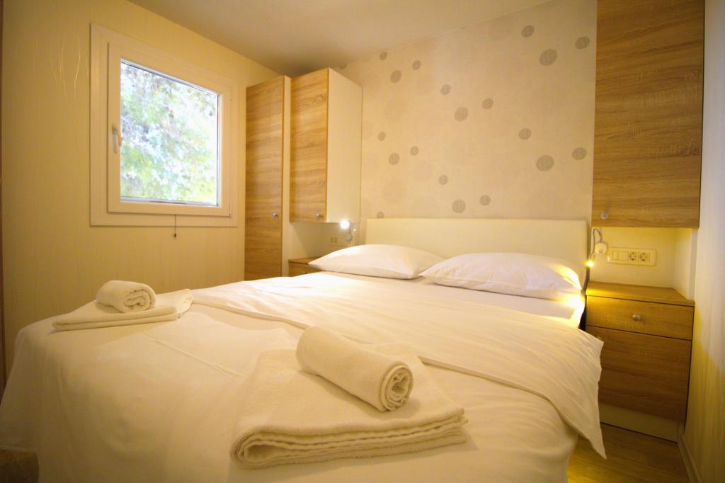 Mobilna kuća sa dvije spavaće sobe nalazi se blizu pješčane plaže Slanica, udaljena je od mora samo 50 metara. Mobilna kuća opremljena je kuhinjom, hladnjakom, perilicom posuđa, WiFi internetom. U spavaćim sobama mogu spavati 4 odrasle osobe, u dnevnom boravku se nalazi kauč koji se može koristiti kao pomoćni ležaj za spavanje. Ispred apartmana nalazi se prekrasna terasa sa pogledom na more u prirodnom hladu. Parking za jedan automobil osiguran je ispred kuće i besplatan.