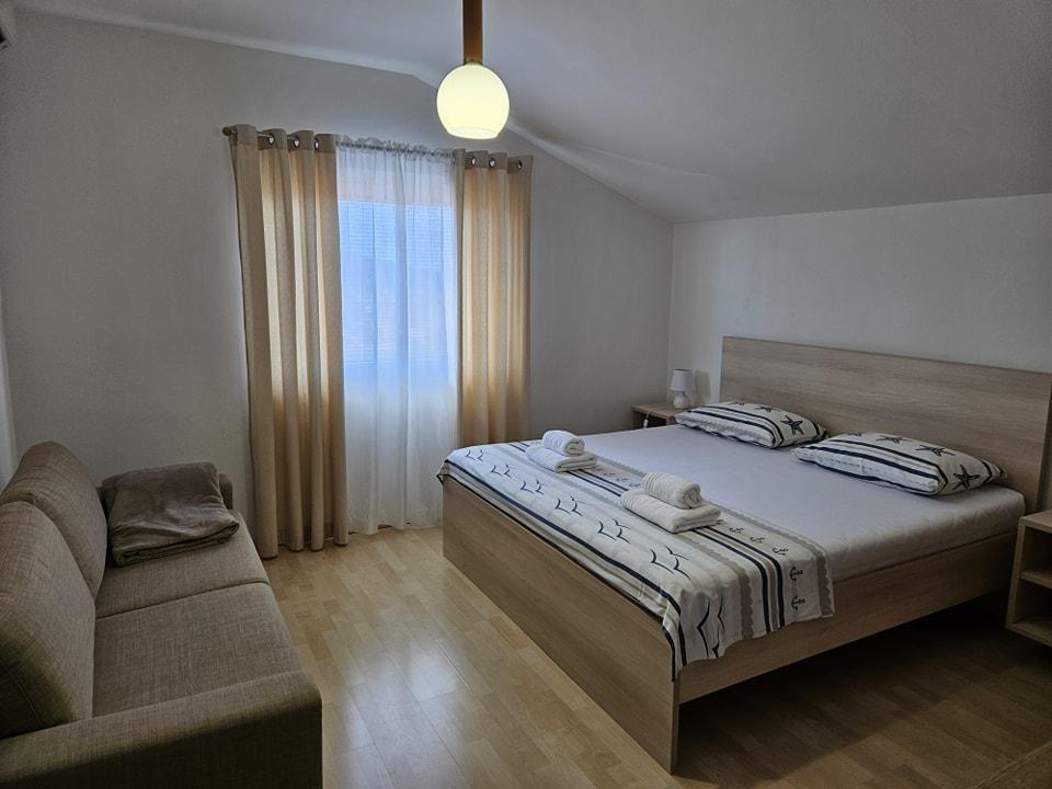 Moderno uređen apartman se nalazi 600 metara od pješčane plaže Slanica, jedne od najljepših plaža u okolici. Apartman ima 100 m2, 3 sobe, 2 kupaone, kuhinju sa blagavaonskim stolom , veliku terasu, klimu u svakoj sobi, wi-fi, tv, sat tv, perilicu suđa, roštilj, osiguran parking za 2 automobila, vrt i sjenicu za odmor. U cijenu je uključena posteljina, ručnici, završno čišćenje te boravišna pristojba.