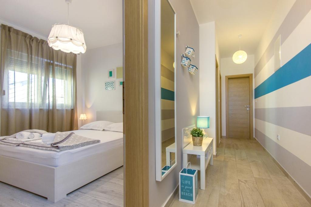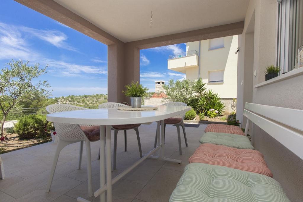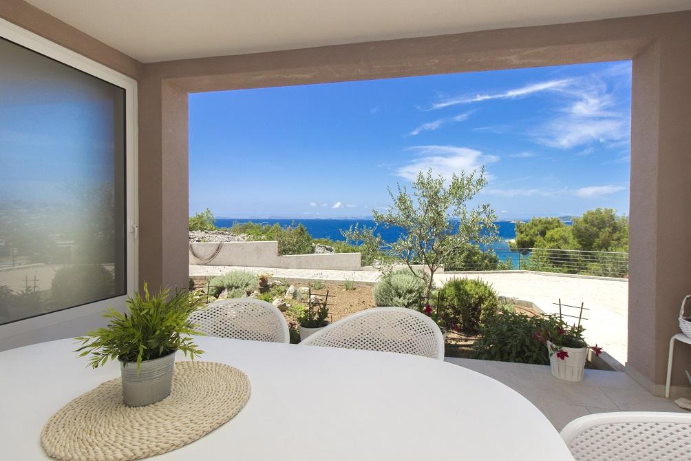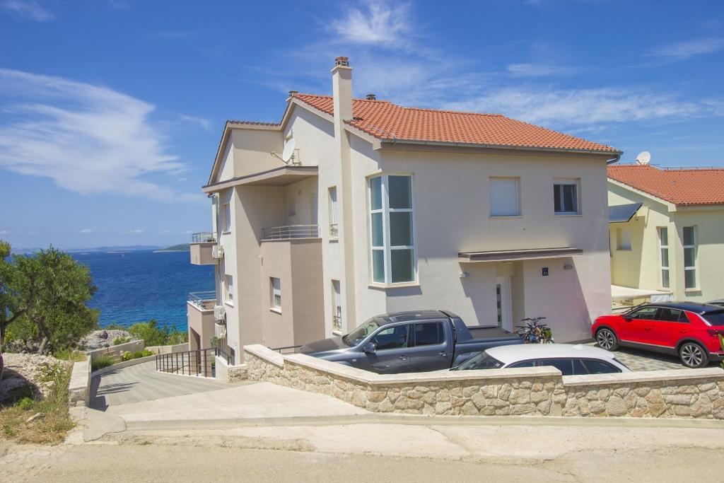 Apartman Sea Wiev s pogledom na more se nalazi na 5 min hoda do pješčane plaže Slanica a do centra mjesta ima 10 min hoda. Sa terase se pruža prekrasan pogled na more, Kornate i kornatsko otočje te pogled na čarobne zalaske sunca. Velicina apartmana je 75m2 + terasa 25m2. Nalazi se u prizemlju. Apartman ima svoj ulaz te dva privatna parkinga. Opremljen je klima uređajem, satelitskom tv, Wi-fijem. Kućni ljubimci su dozvoljeni i dobrodošli:))