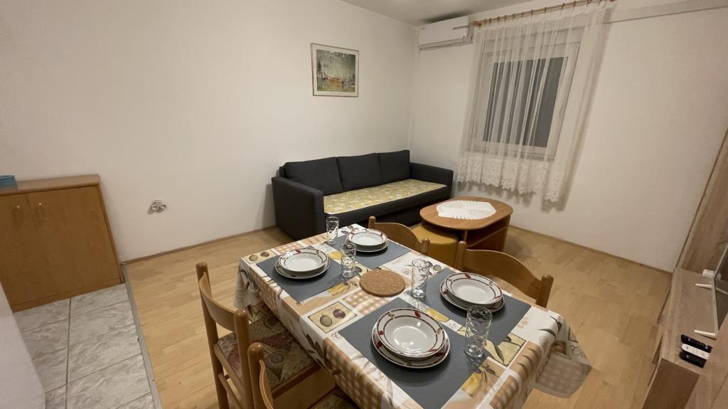 Dobar dan, poceli smo sa primanjem rezervacija za 2024! Nase cijene su za 2024 ostale ne promijenjene i kalendar je uvijek na vrijeme azuriran. Apartman se nalazi na Murteru u Šibensko-Kninskoj županiji. Smješten je direktno na jednoj od najljepših murterskih plaža, Slanica i nudi sve za Vaš dugo potrebni odmor. Apartman također posjeduje terasu koja ima pogled na plažu i more. Uz apartman dolazi i parking mjesto koje je uključeno u cijenu apartmana. Ovaj apartman ima 1 spavaću sobu, dnevnu sa krevetom na razvlačenje i kompletnom kuhinjom te ga čini idealnim mjestom za porodični odmor. Također u sklopu apartmana se nalazi TV ravnog ekrana, WiFi, DAB+ radio, štednjak i perilica rublja u tek renoviranom kupatilu. U neposrednoj blizini apartmana se nalaze kafići, restorani, tenisko igralište i dječji vodeni park. Svi ugostiteljski sadržaji rade do 22 sata uvečer i nakon toga se zabava seli u centar Murtera koji je udaljen 15tak minuta laganog hoda.