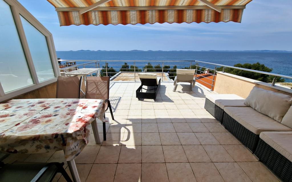 G1 apartman se nalazi na vrhu gornje kuće na zapadnoj strani. Ima površinu 50m2 s još 20m2 terase. Namijenjen je za ugodan boravak 2 do 3 osobe s velikom terasom i panoramskim pogledom na kornate te otvoreno more između Kornata i Murtera. Apartman ima jednu spavaću sobu i kupaonicu s WC-om te jedan veliki zajednički prostor vizualno potpuno otvoren prema terasi i panoramskom pogledu na more. U tom zajedničkm prostoru se nalazi kuhinja s blagavaonicom i dnevni boravak. Apartman je opremljen snažnom klimom, WiFi internetom, ima satelitske programe i streaming service (netflix). Uz apartman na raspolaganju stoji jedno parking mjesto te prostor u hladu uz plažu s ležaljkama.