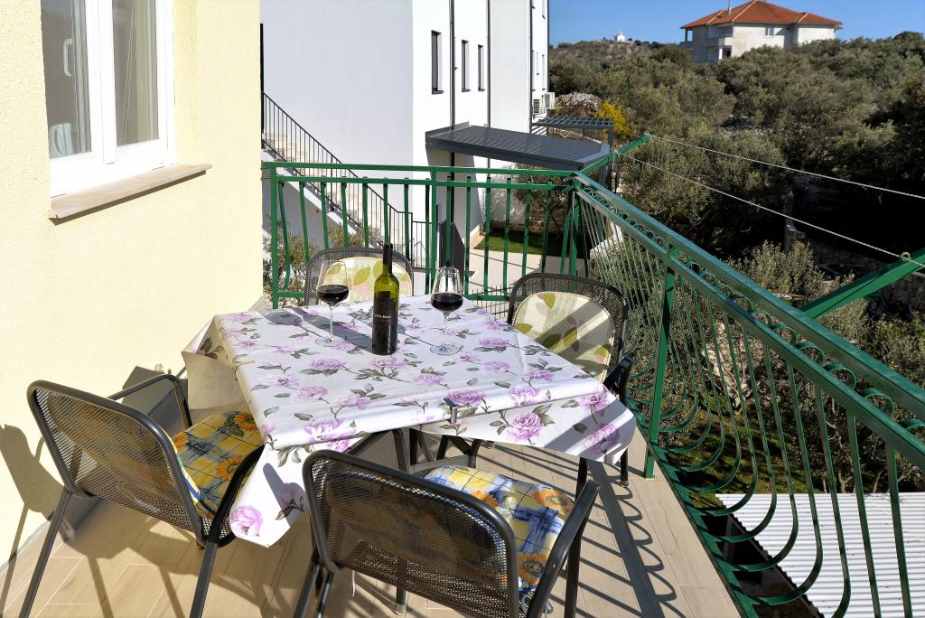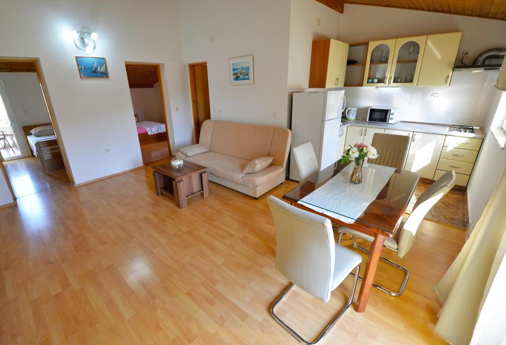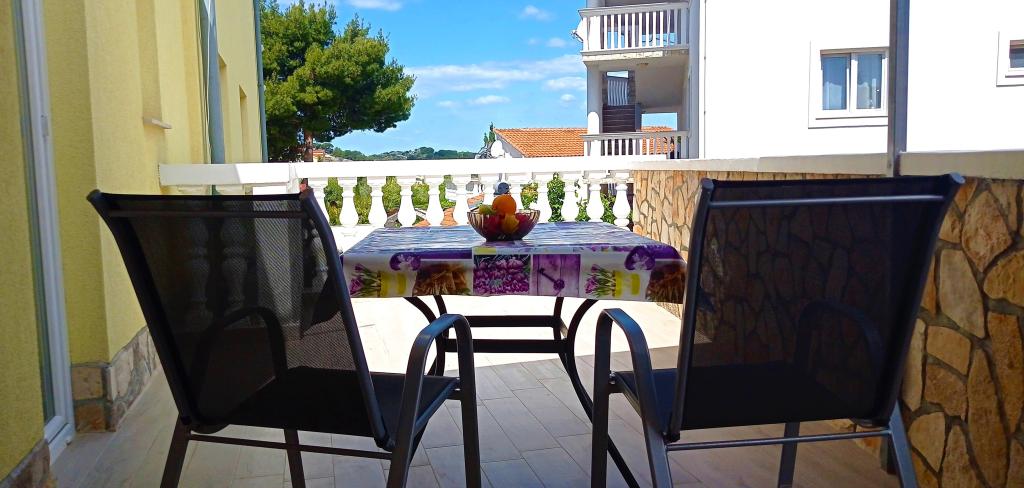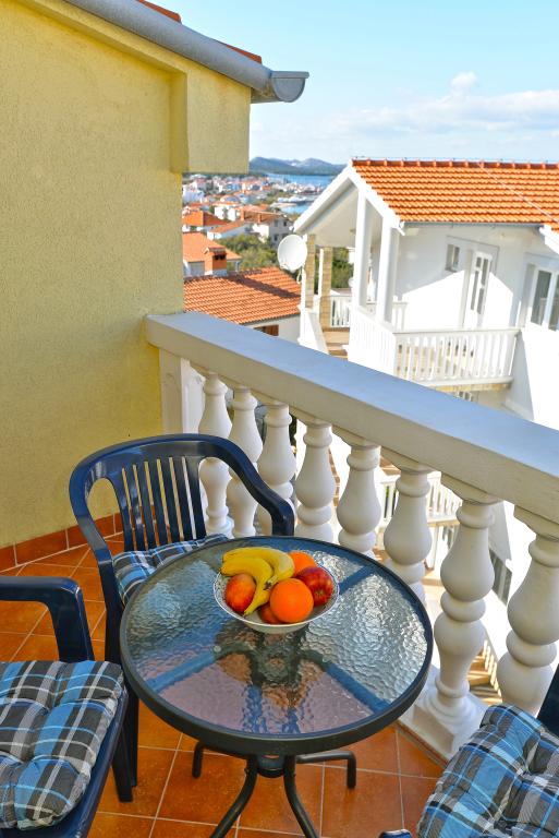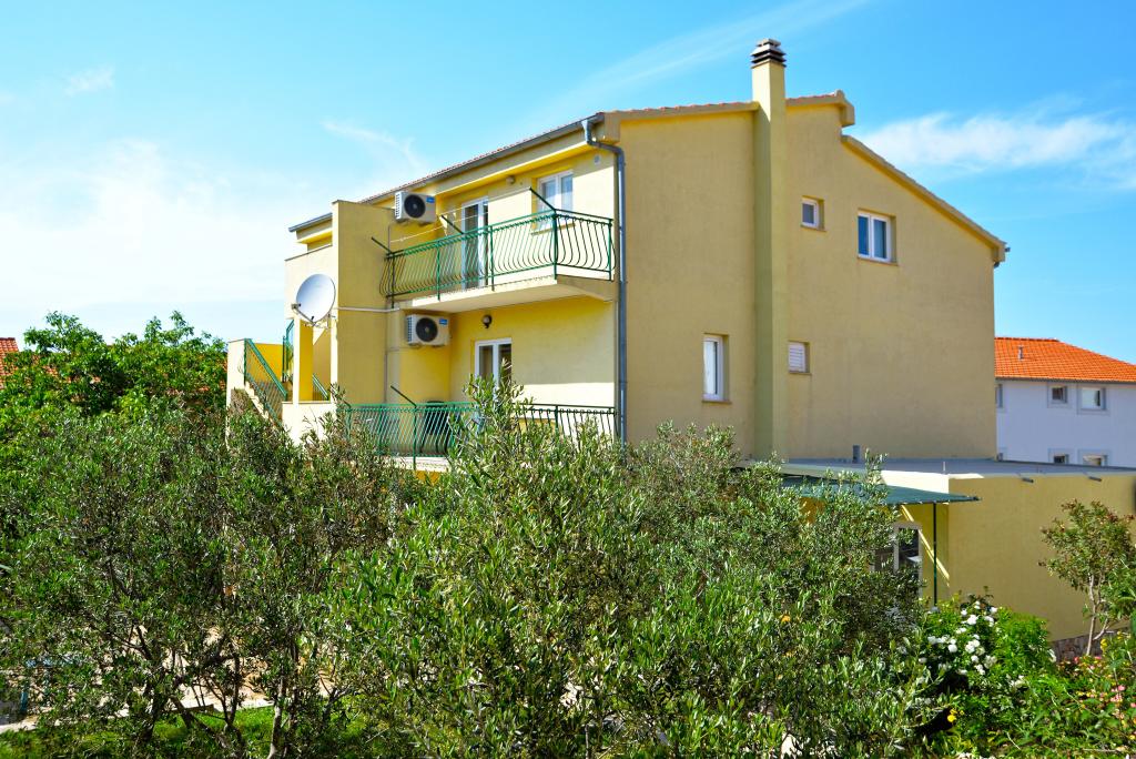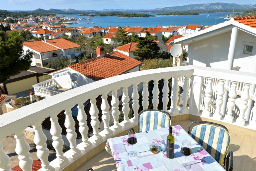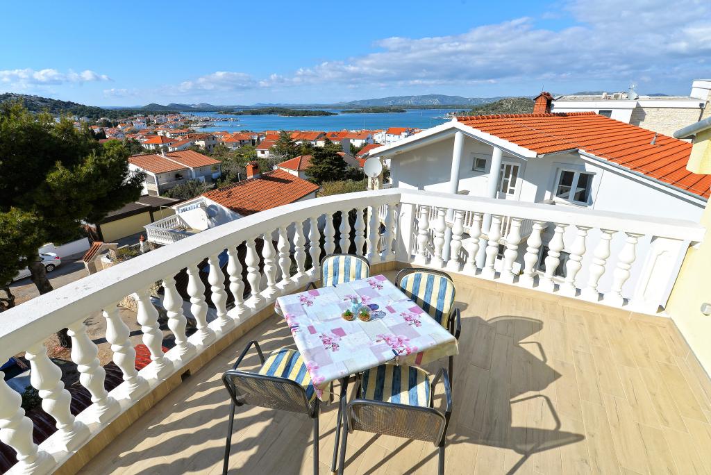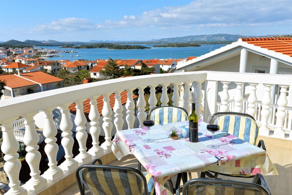 Za Vaš savršen odmor nudimo Vam šest lijepo uređenih i kompletno opremljenih apartmana (klima, wi-fi, sat-tv bez doplate) s jednom/dvije/tri spavaće sobe, kuhinjom, kupaonicom, dnevnim boravkom i naravno neizostavnom velikom terasom, s koje se pruža predivan pogled na more i Murtersko otočje te ribarsku kućicu na otoku Zminjaku. Objekt se nalazi u mirnom dijelu naselja, slijepoj ulici tako da je promet sveden na minimum, te je stoga idealan za goste željne mira i tišine, te za obitelji s djecom. Ljubiteljima roštiljanja je na raspolaganju veliki vanjski roštilj. Natkriveni i osiguran parking za deset automobila nalazi se ispred kuće. Na deset min hoda nalaze se prekrasna pješčana plaža Slanica, udaljenost od centra mjesta je oko 600 m gdje se nalaze trgovine, restorani, caffe barovi i gdje se odvija intenzivan ljetni život pun događanja. Naši apartmani su poželjni zbog prekrasnog pogleda, atraktivne lokacije i udobnosti, ali i zbog našeg otvorenog srca i gostoprimstva. Dobrodošli!
