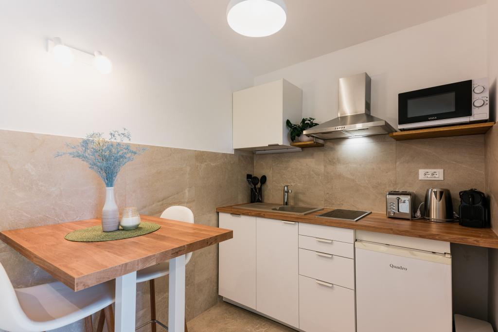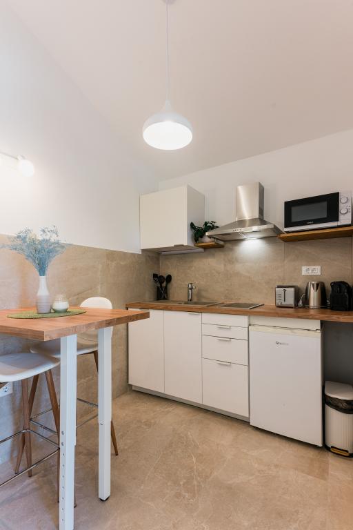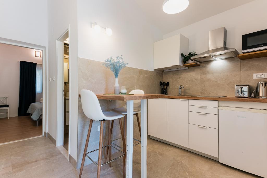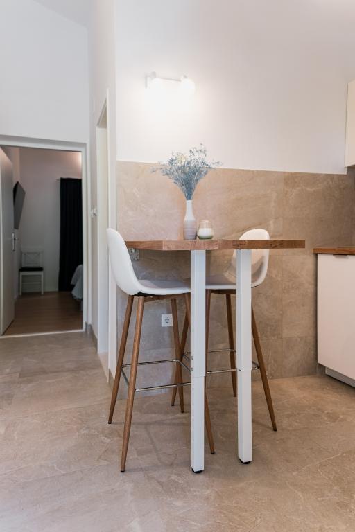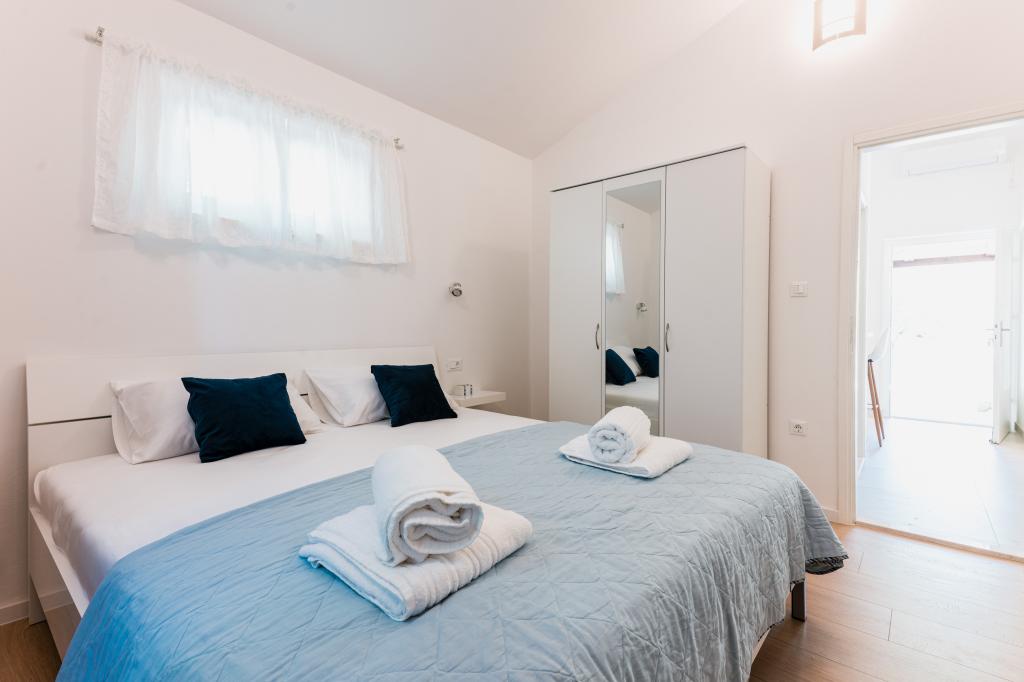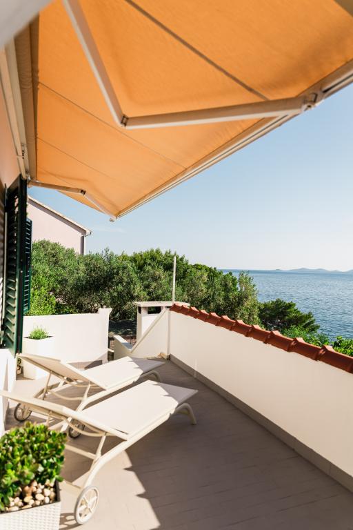 Nudimo dva novo namještena apartmana na odličnoj lokaciji samo 30 metara od mora. Apartmani se nalaze u mirnom predjelu Murtera, idealnom za odmor. Besplatan parking za goste apartmana se nalazi odma ispred objekta. Gostima je na raspolaganju vanjski tuš i ležaljke. Plaža Čigrađa udaljena je 5 minuta hoda od smještaja, a plaža Slanica 15 minuta. Sa terase oba apartmana se pruža predivan pogled na more. Apartmani su kompletno opremljeni za ugodan boravak.
