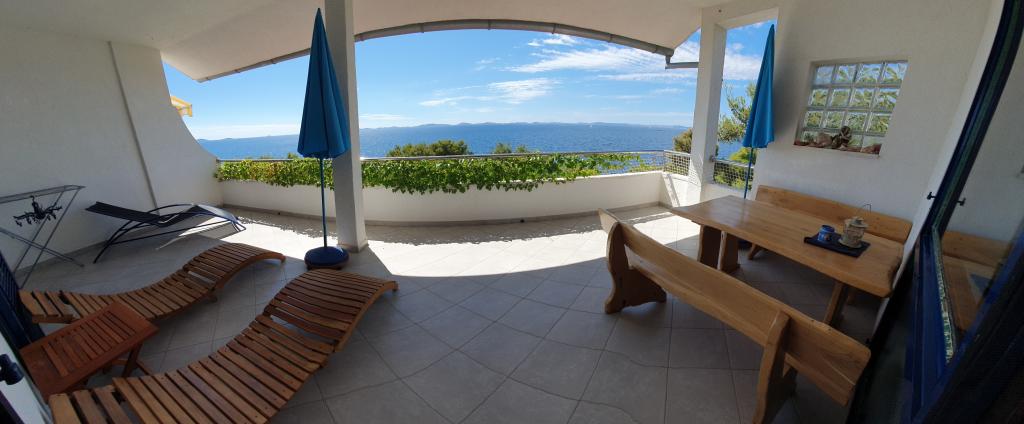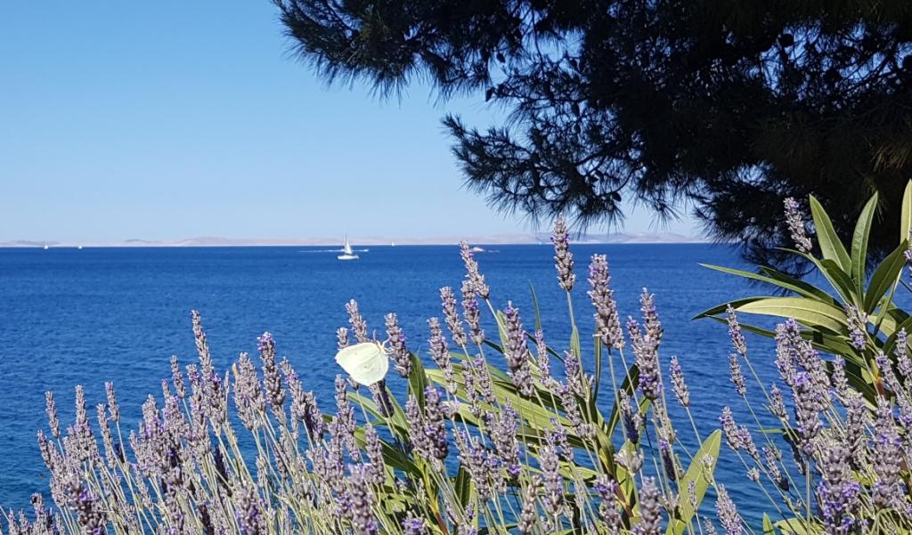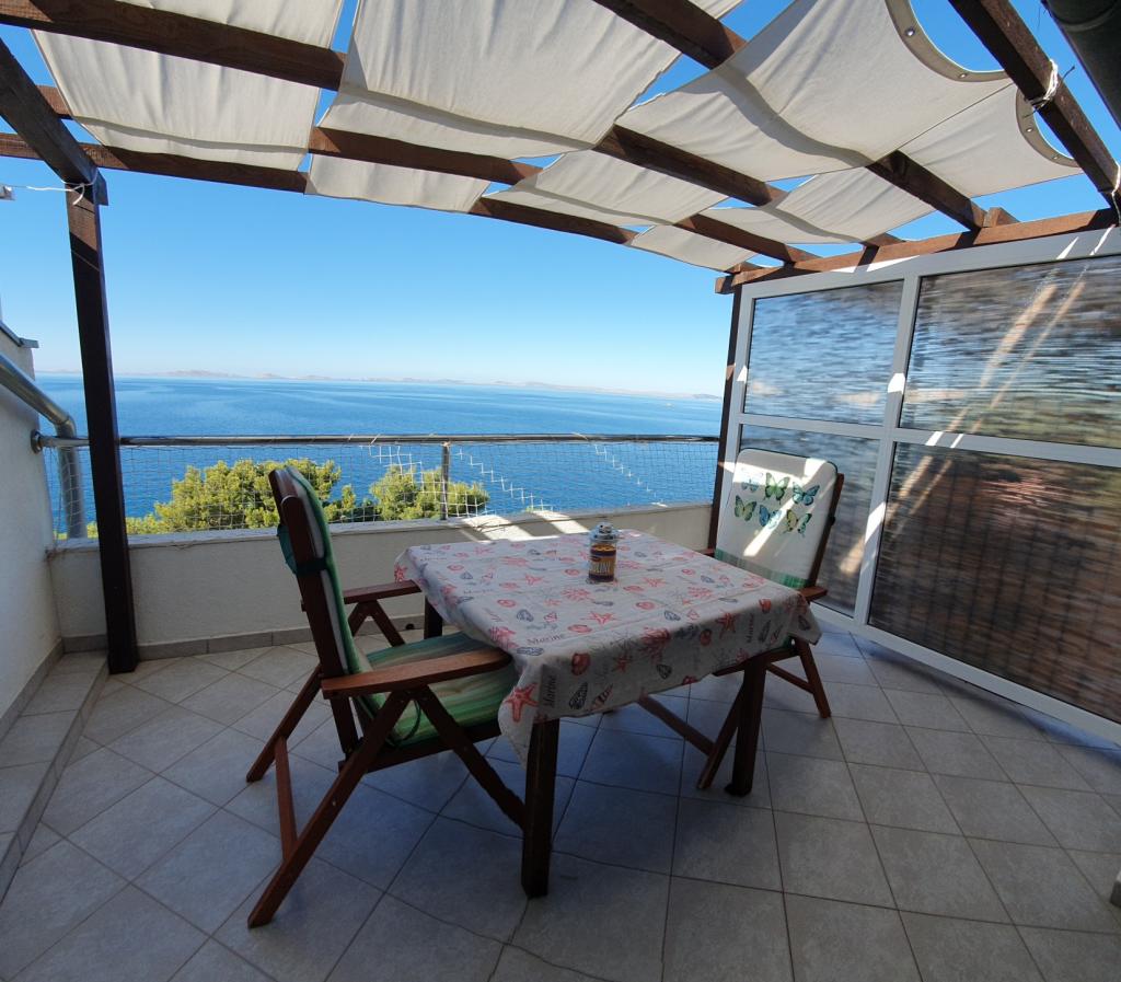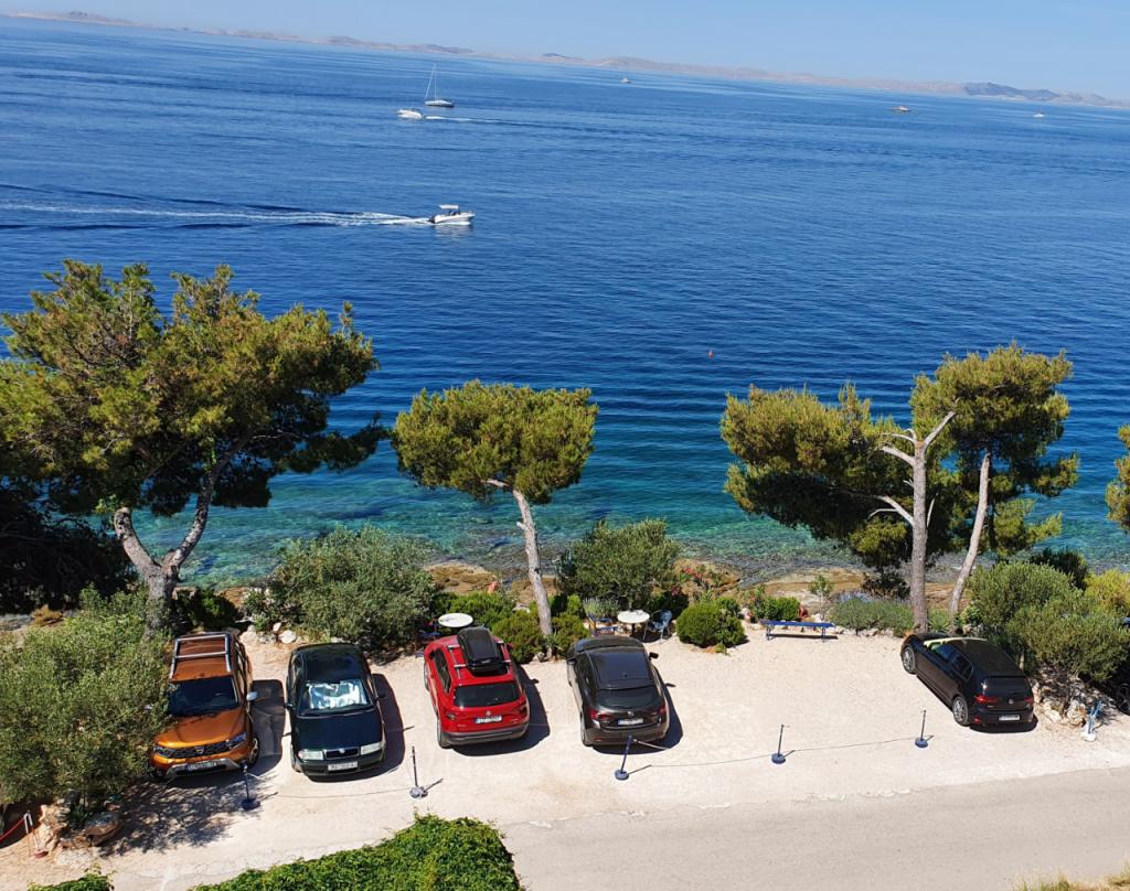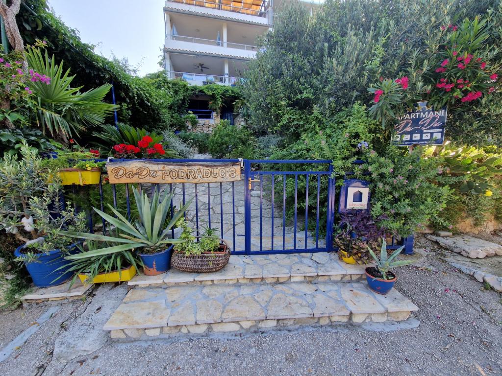 Opremljeni "Da-Du" apartmani su na najljepšoj južnoj strani otoka Murtera. Terase imaju pogled na more i Nacionalni park Kornati. Terase između apartmana su odvojene. Objekt je u mirnoj ulici s okućnicom punom cvijeća i zelenila prvi red do mora. Na 2 minute od apartmana je kamena plaža za goste željne mirnijeg sunčanja, a onima željnima igre na pijesku poznata plaža Slanica je na 5 minuta gdje su restorani, kafići, sportska i zabava za djecu. Prema centru najljepše je prošetati laganim hodom 15 minuta. Za bicikliste smo na idealnom položaju jer nema velikih uspona. Izuzetno pazimo da provodimo mjere dezinfekcije kako bi se Vi i obitelj osjećali sigurno.