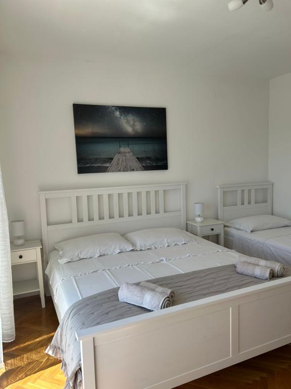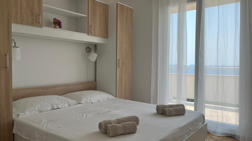Kompletno opremljeni apartmani u privatnoj kući , 1.red do mora s pogledom na NP Kornati. Nalazimo se u mirnom predjelu u blizini poznate pješčane plaže Slanica, udaljeni hodom do centra 10 min.