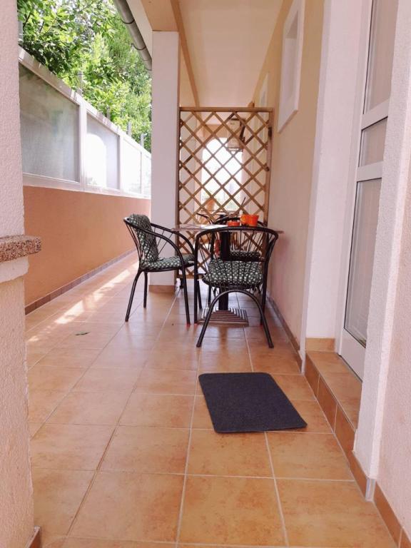 Apartman 2+2 nalazi se u centru Murtera na adresi Hrvatskih vladara 26, 10 minuta udaljen od plaže. Posjeduje vlastiti parking.