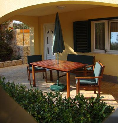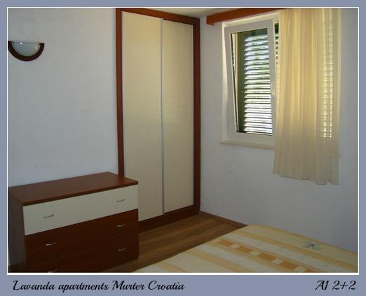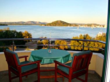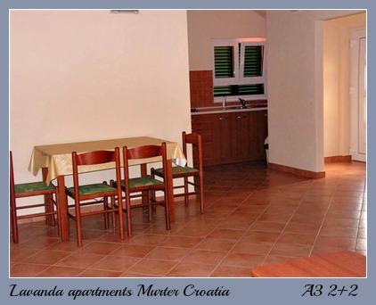 Murter, klimatizirani apartmani 2-4 osoba, prvi red do mora, svaki sa svojom terasom ili balkonom smješteni u velikom dvorištu s mediteranskim vrtom u mirnom dijelu mjesta. Parkiralište osigurano.