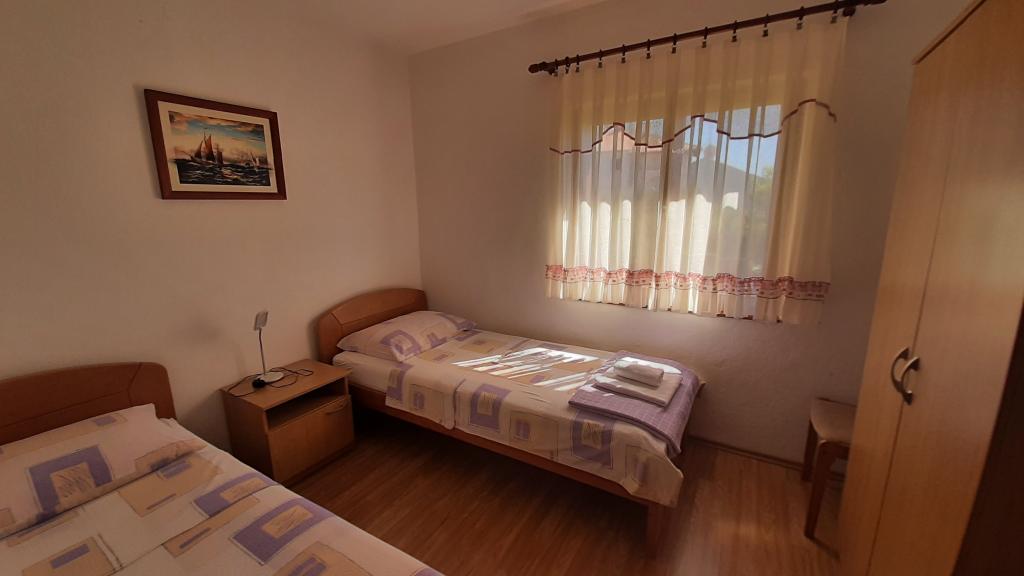 Vrlo ljubazna i draga vlasnica. Čist, prostran apartman s vrlo velikom i zasjenjenom terasom s pogledom na more. Potpuno opremljena kuhinja i sobe, natkrivena parkirna mjesta za automobile. Plaže i konobe vrlo blizu. Mjesto vrijedno preporuke za miran odmor.