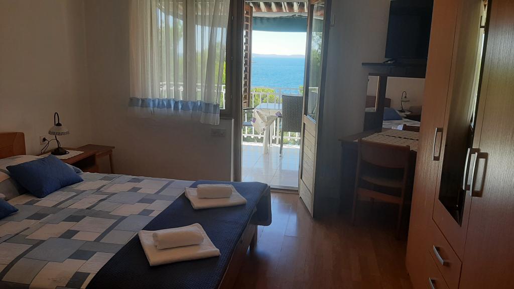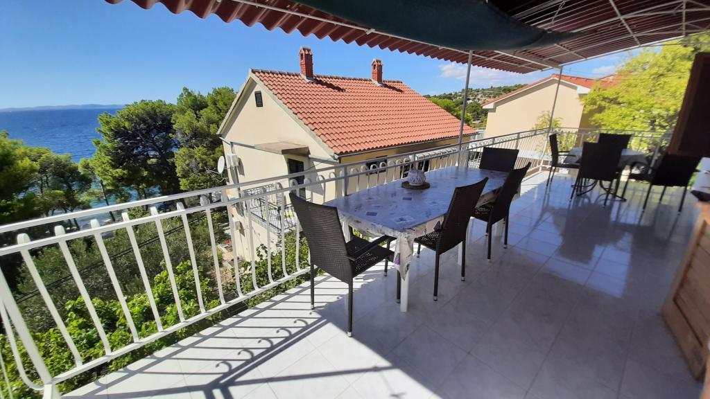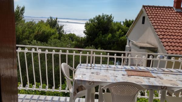Apartman sa prekrasnim pogledom na more nalazi se na odličnoj lokaciji udaljenoj samo 40 metara od mora sa osigurana dva privatna parkirna mjesta uključena u cijenu. Apartman ima 3 spavaće sobe gdje može spavati 6 odraslih osoba 2 pomoćna ležaja za dvije osobe. Apartman je opremljen sa TV-om, klimom, besplatnim wifi-jem, pećnicom i roštiljem. Balkon/terasa je površine od 20m2 sa prekrasnim pogledom na more, zalaske sunca, Kornate i svjetionik. Udaljen je svega 4 minute hoda do plaže Slanica, 12 minuta hoda do plaže Podvršci, 15 minuta hoda do plaže Čigrađa i 5 minuta hoda do trgovine. Od centra mjesta udaljen je 20 minuta hoda.