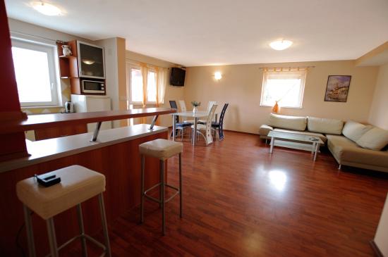 Odličan smještaj ,blizina svega sto vam je potrebno za odmor. Bili 8 dana,, automobil nismo koristili. Apartmani uredni ,opremljeni, a vlasnici pristupačni i nenametljivi. Sve pohvale i preporuke