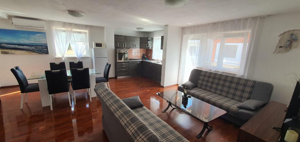 Turistička pristojba je uključena u cijenu.Apartman je odlično opremljen, čist, prostran za 4 osobe i udoban. Donaćini su veoma ljubazni sa konkretnim i korisnim informacijama. Lijepa terasa sa pogledom za uživanje tijekom cijelog dana. Lokacija dobra, blizu grada.