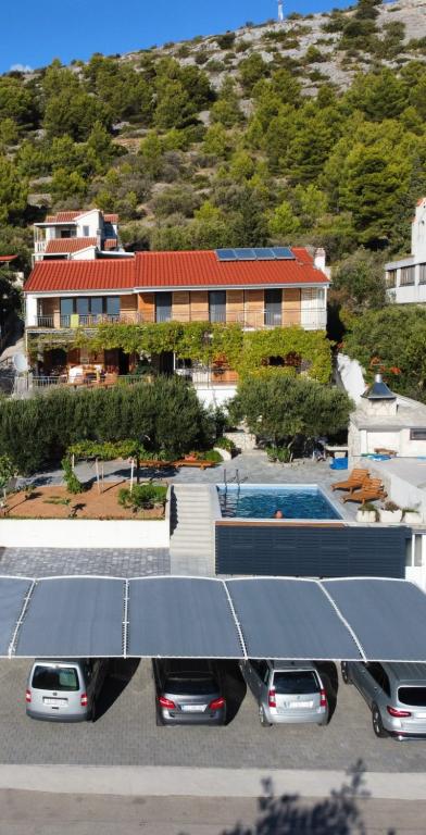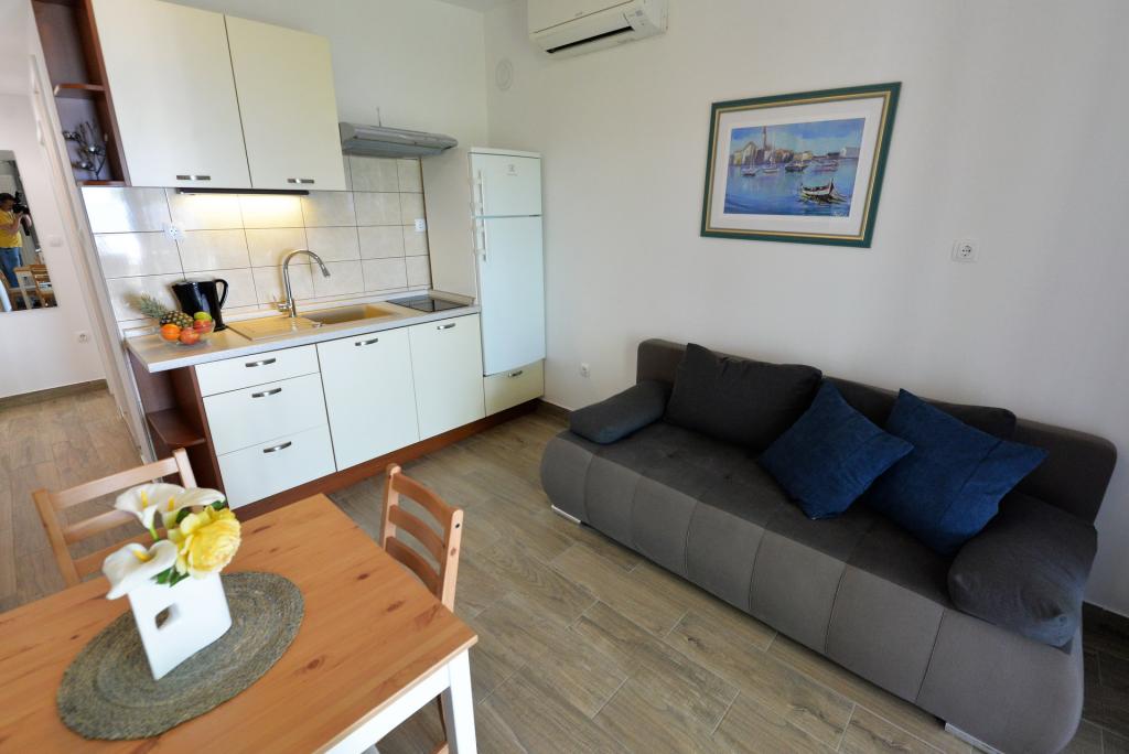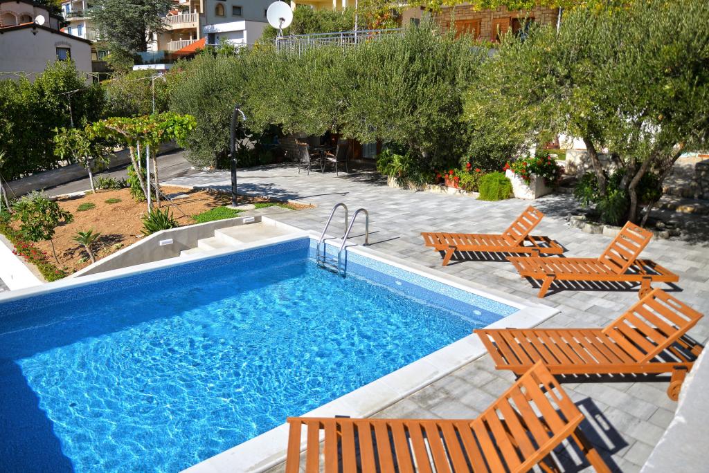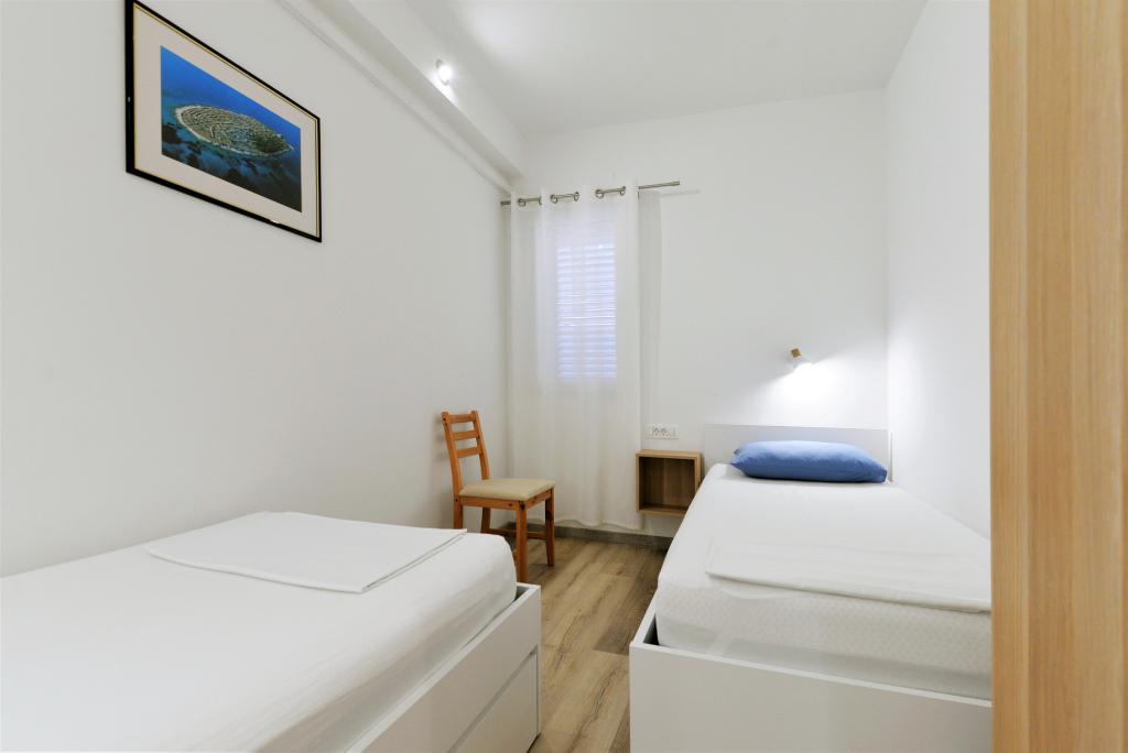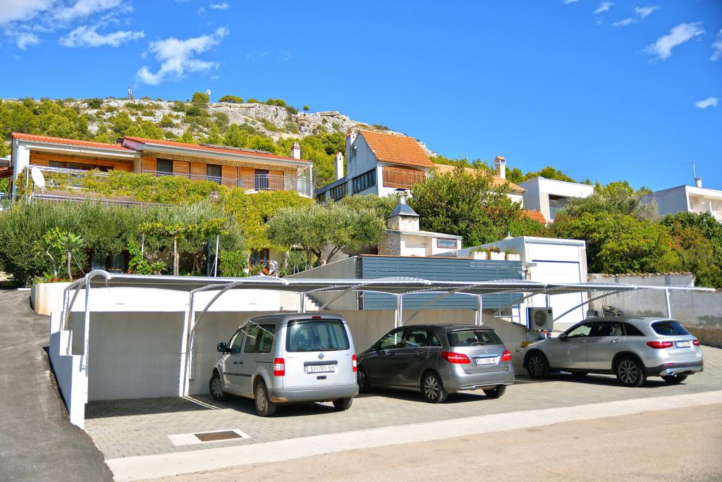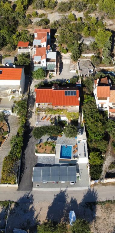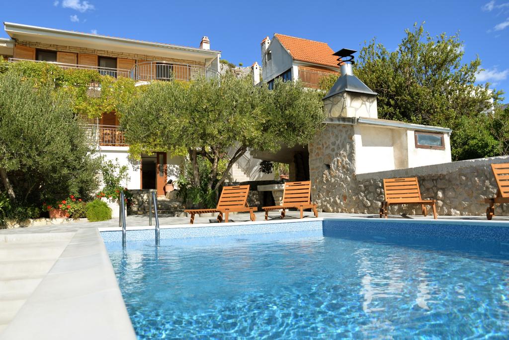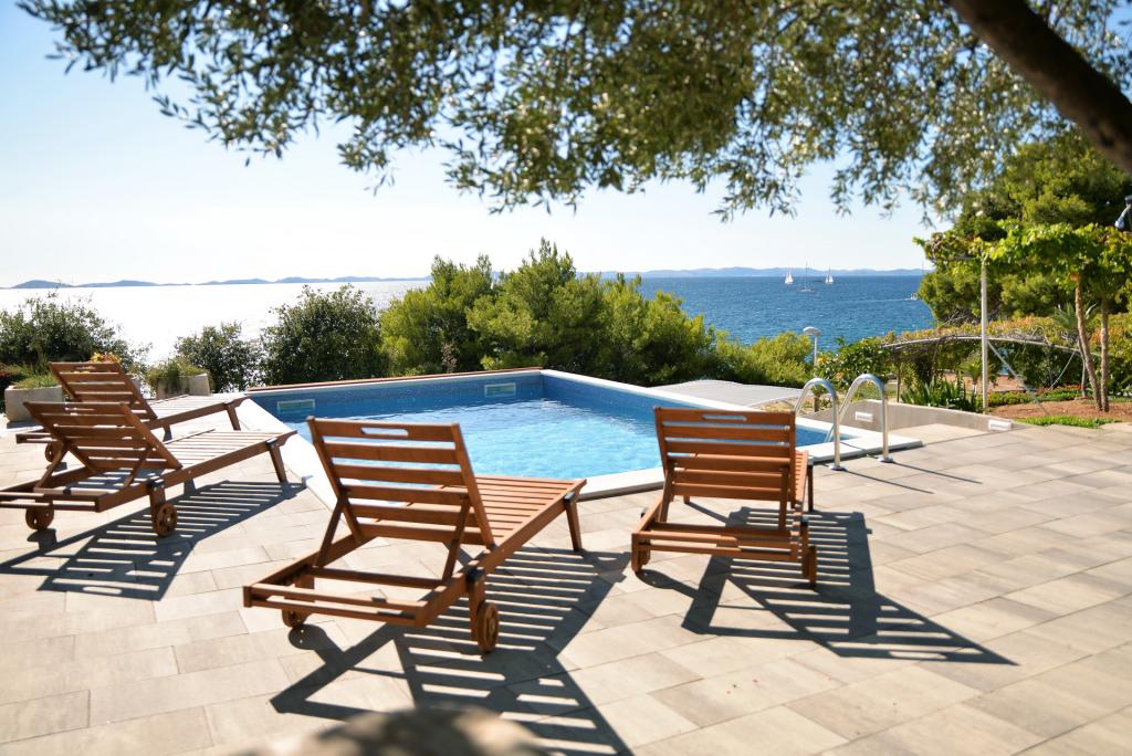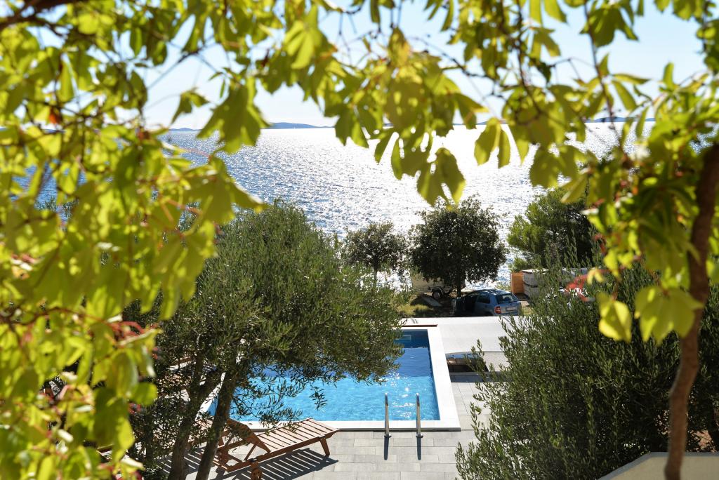 Za savršen odmor nudimo dva apartmana s jednom/dvije spavaće sobe, kuhinjom, kupaonicom, dnevnim boravkom i terasom s pogledom na more i Kornate. Objekt se nalazi u mirnom dijelu otoka Murtera. Gostima je na raspolaganju i bazen, veliki vanjski roštilj te parking. Ispred objekta se nalazi stjenovita i šljunčana plaža, a na 10 min hoda pješčana plaža Slanica i Čigrađa.